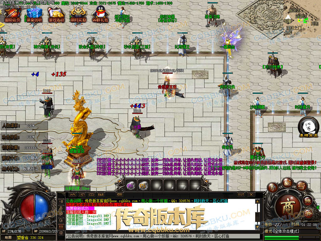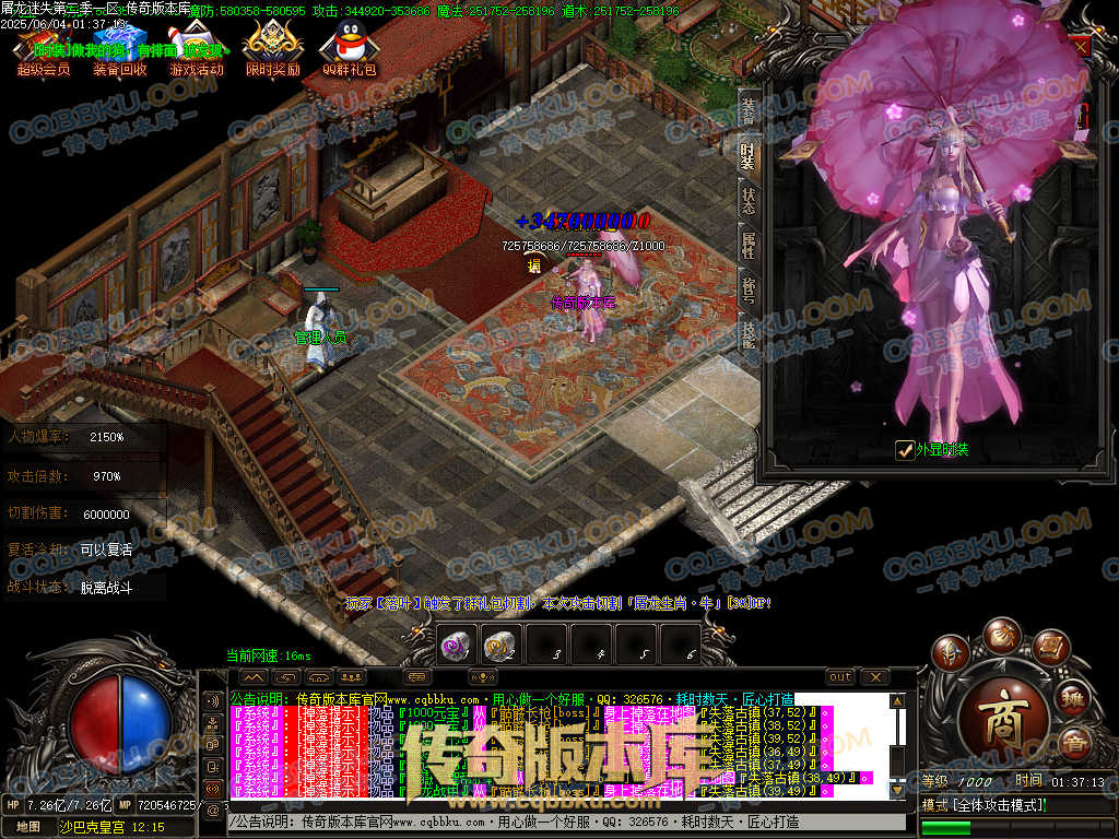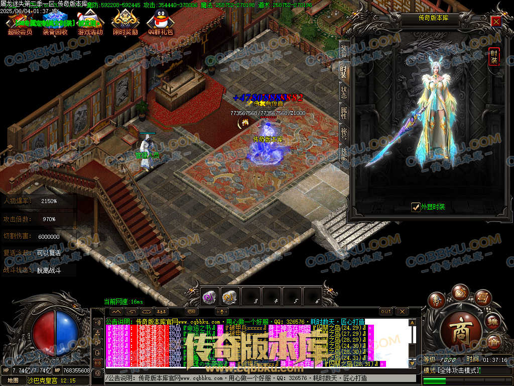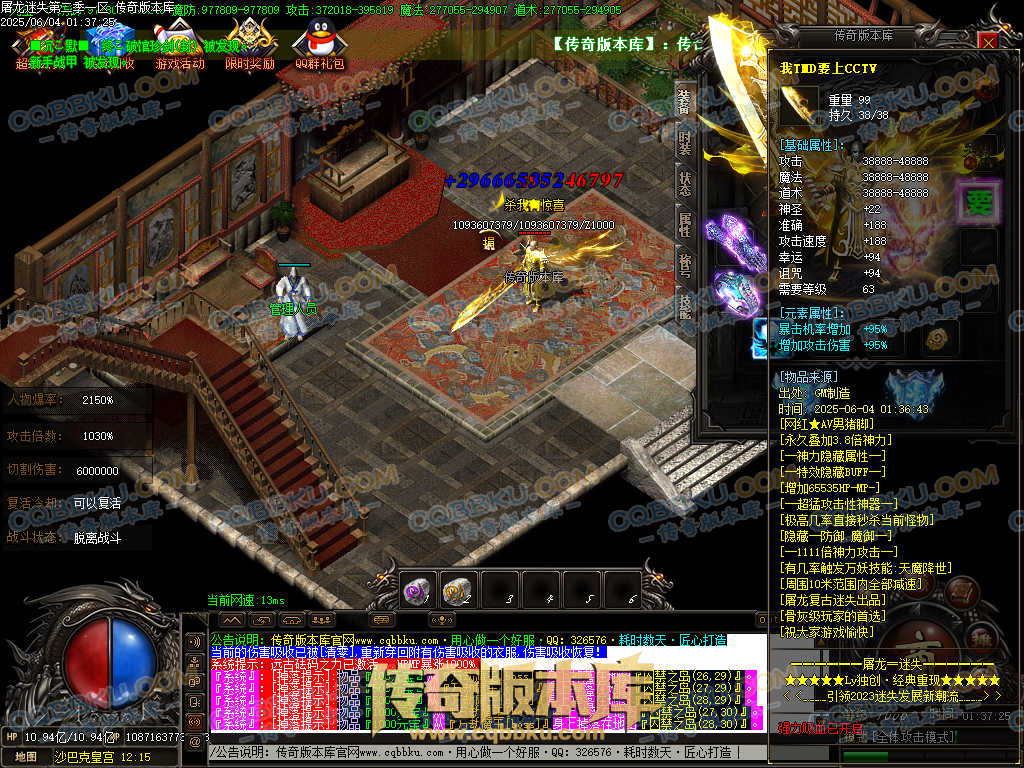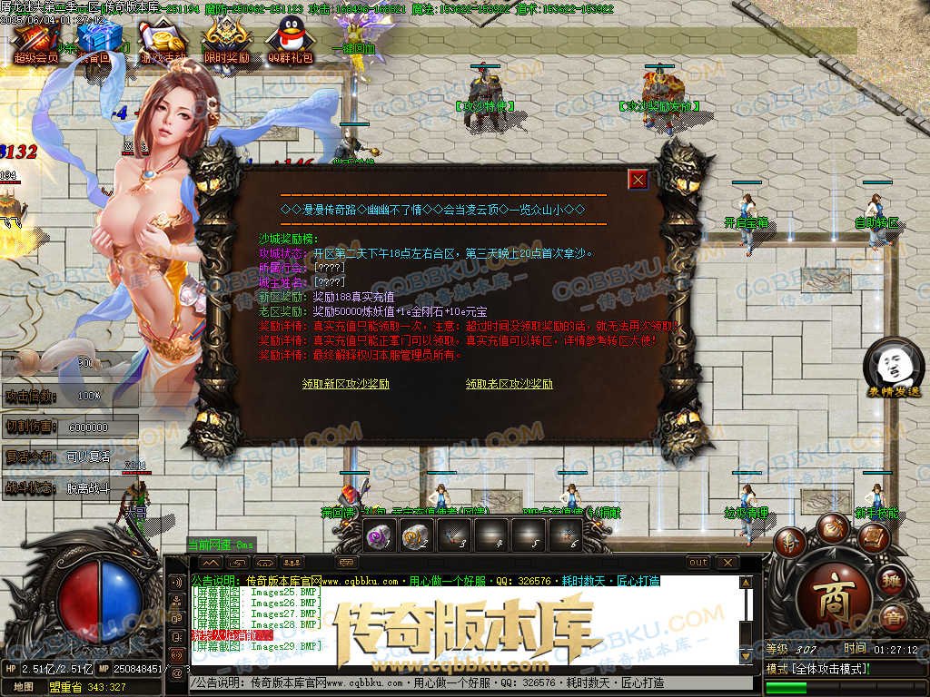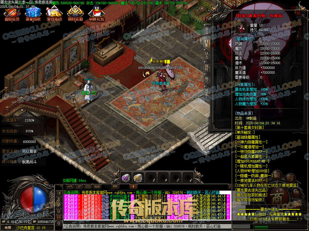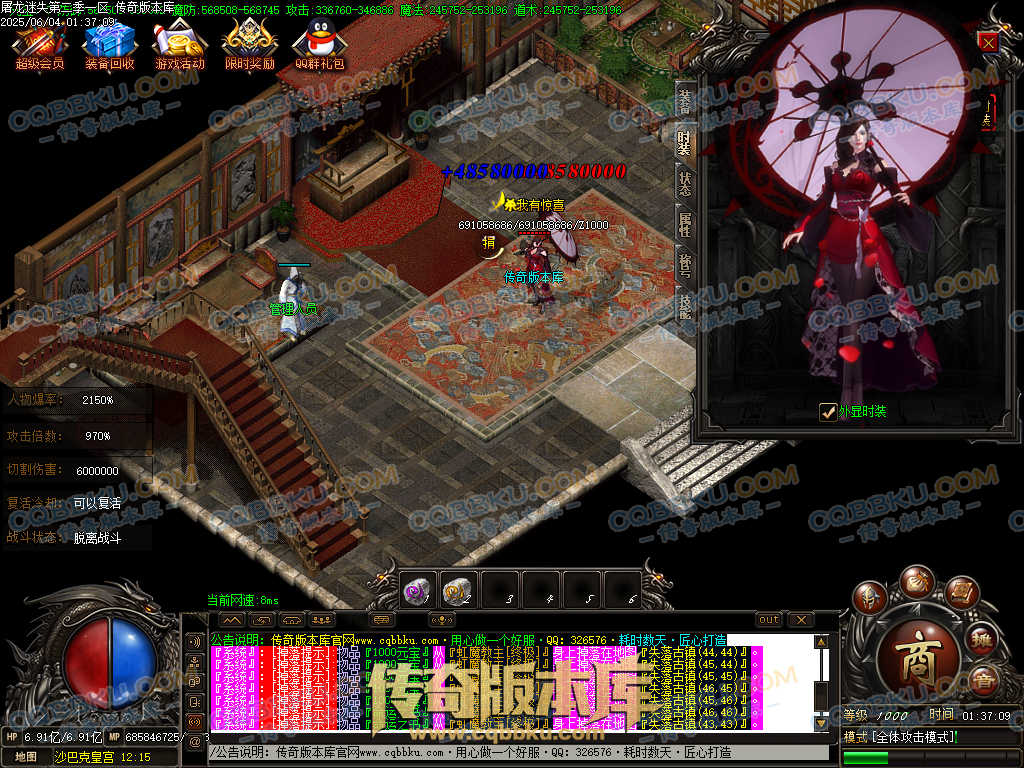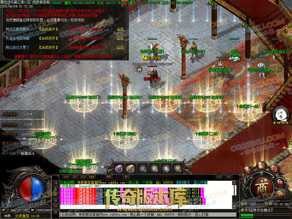 [土豪玩法]:上线充个300元,领取99满回馈礼包,终极屠龙命格,满爆率,100%鞭尸,全屏吸怪,刀刀冰冻,简称行走的推土机,进入地图 吸怪 用龙影 几刀全秒,进入任何地图都全清,因为所有怪都有可能给你爆好装备.领取此回馈,至少让你少奋斗24小时!!