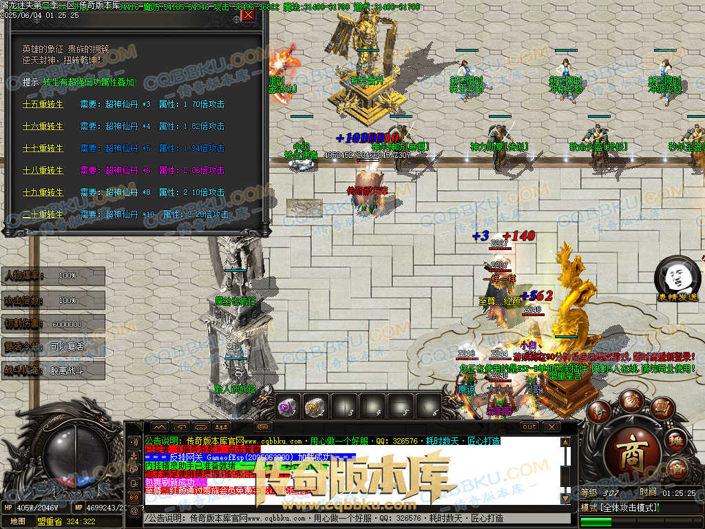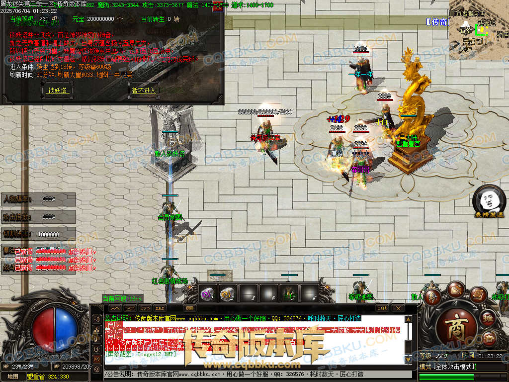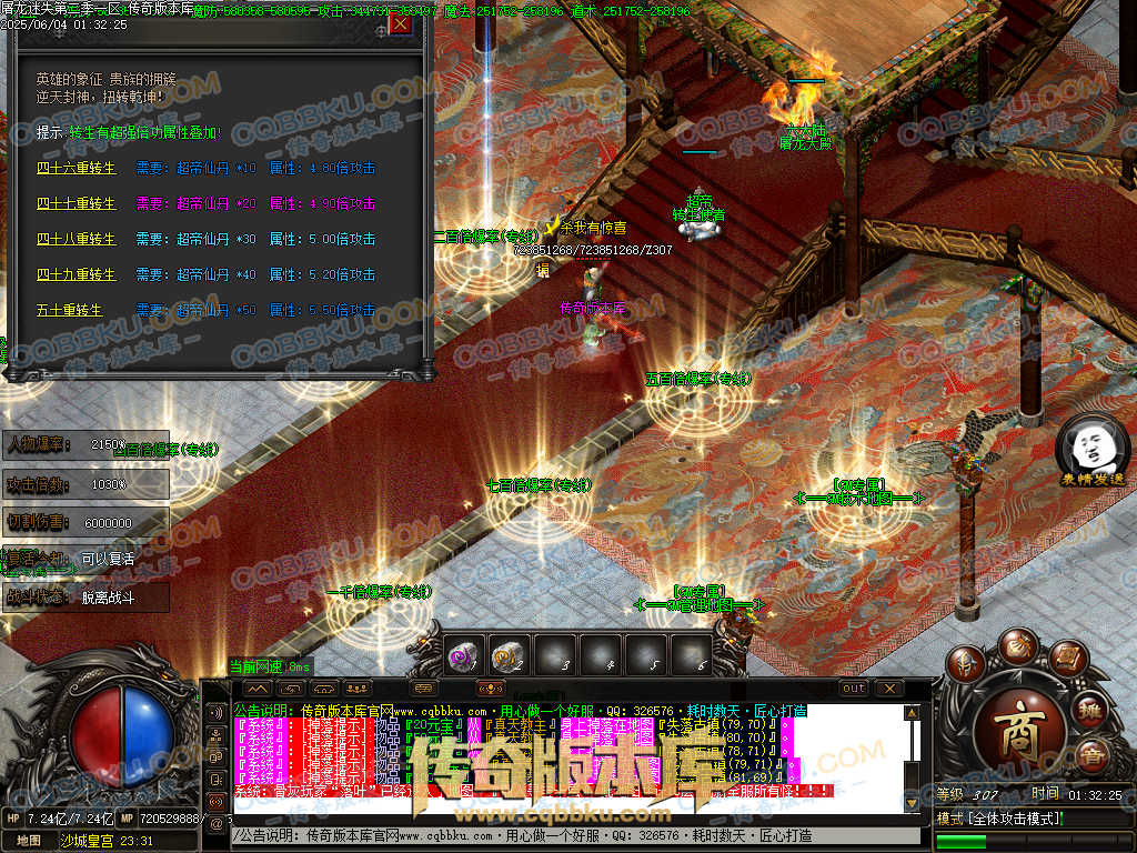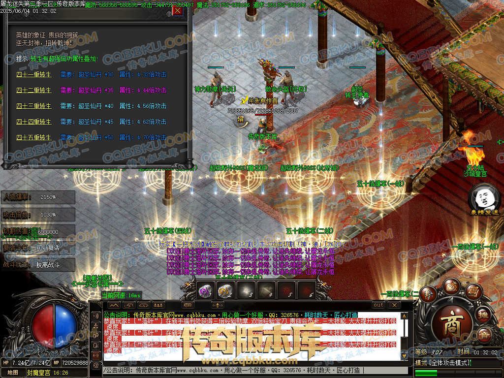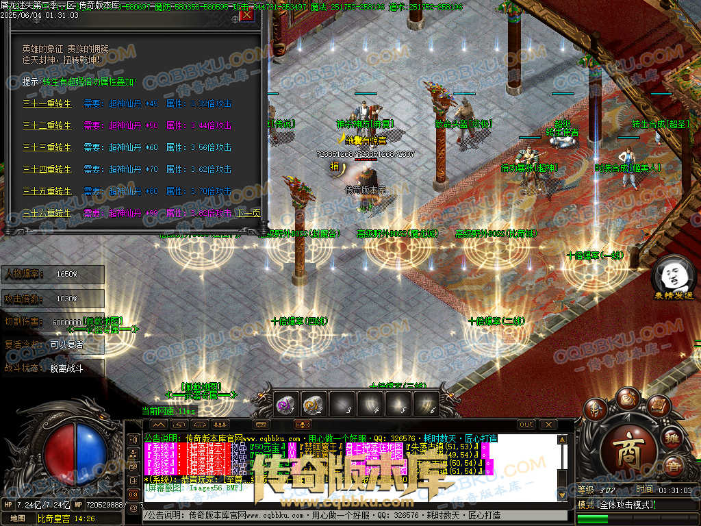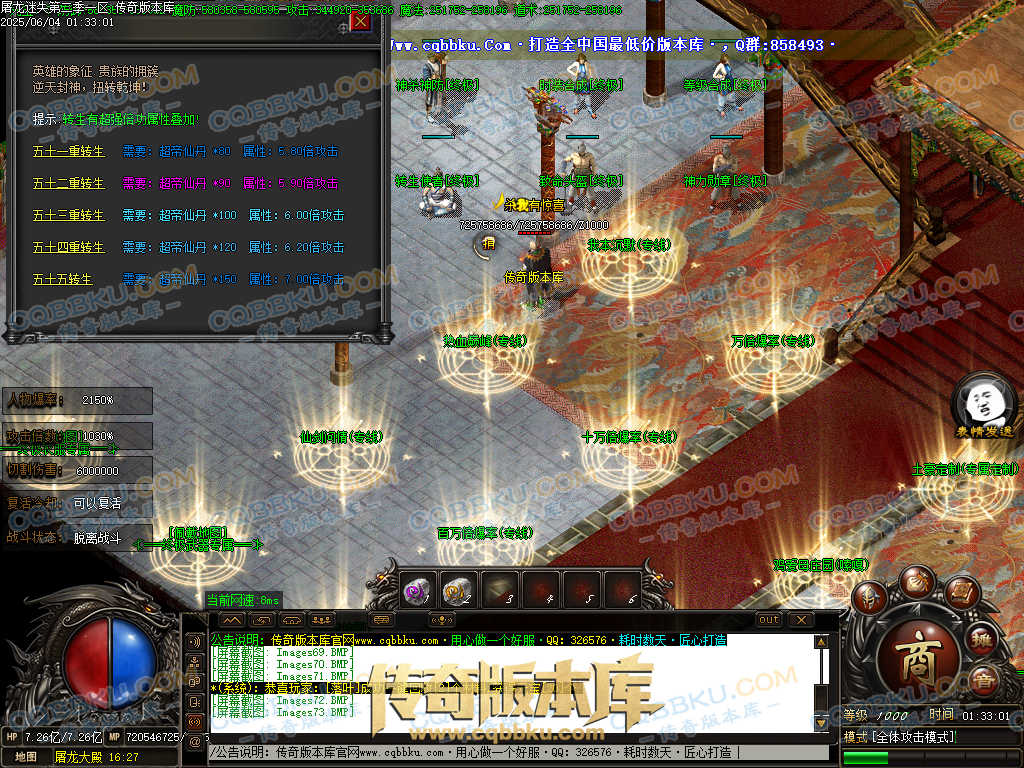[友情提示②]:元宝满20亿自动换成元宝蛋,转生材料可以在商铺第二页直接元宝购买,元宝非常好打,超多首爆,随随便便奖励几十亿元宝,金刚石满10亿也自动换成卷,不用担心爆的问题。!