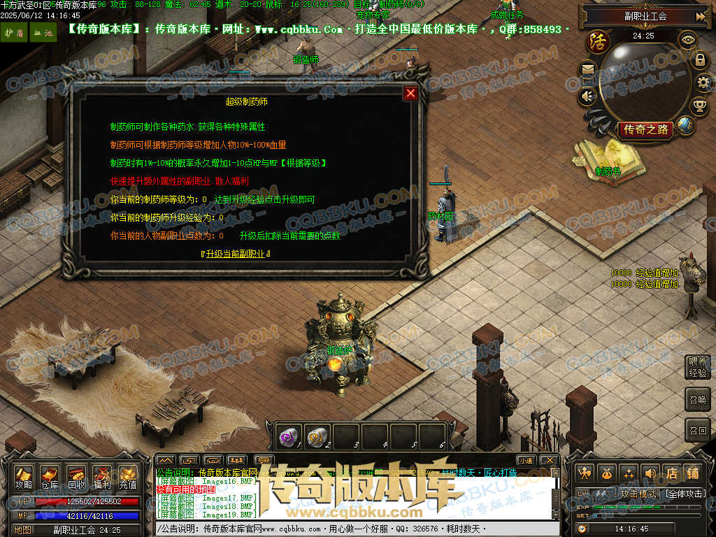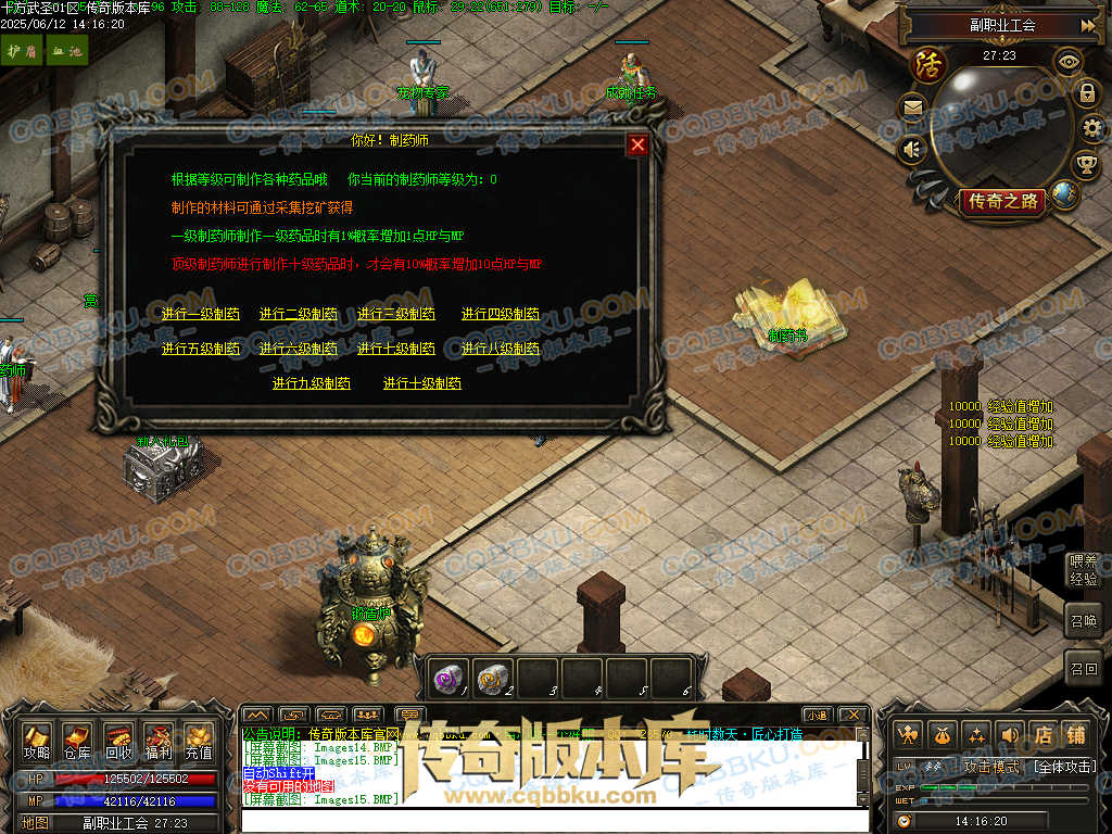 3.制药(顶级制药师制作十级药品)时有1%-10%的概率永久增加1-10点HP与MP[根据等级]