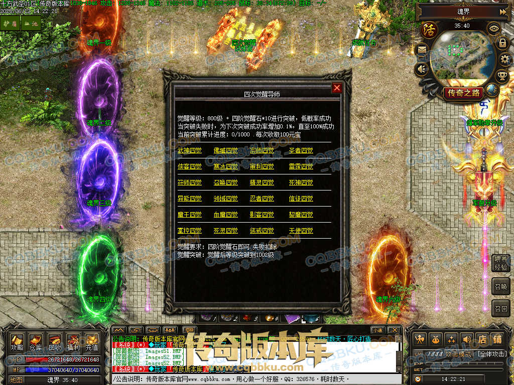 觉醒异能:根据职业提升各种属性,等级突破:—次觉醒后等级可突破到302级