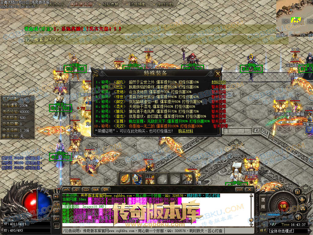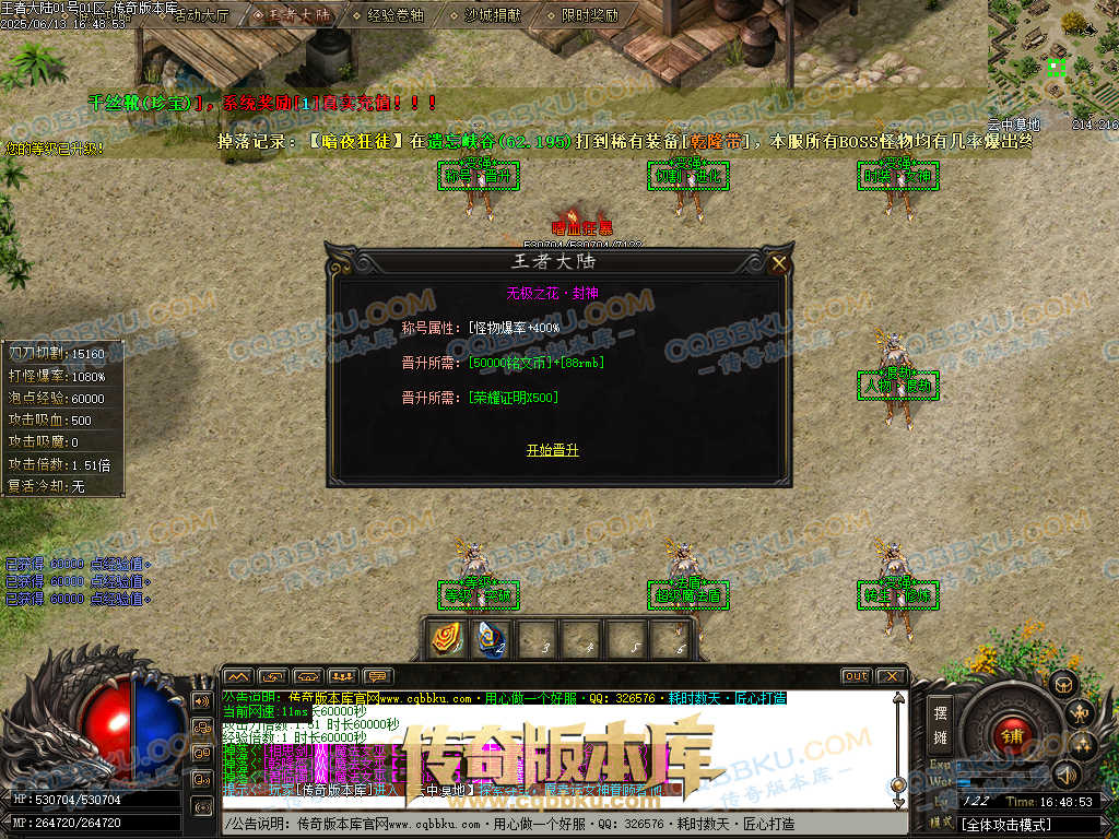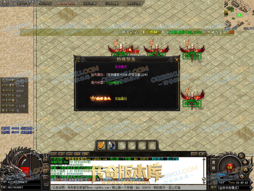 注:本服郑重承诺小怪均有几率出终极,绝对不假,试过爆率的都知道