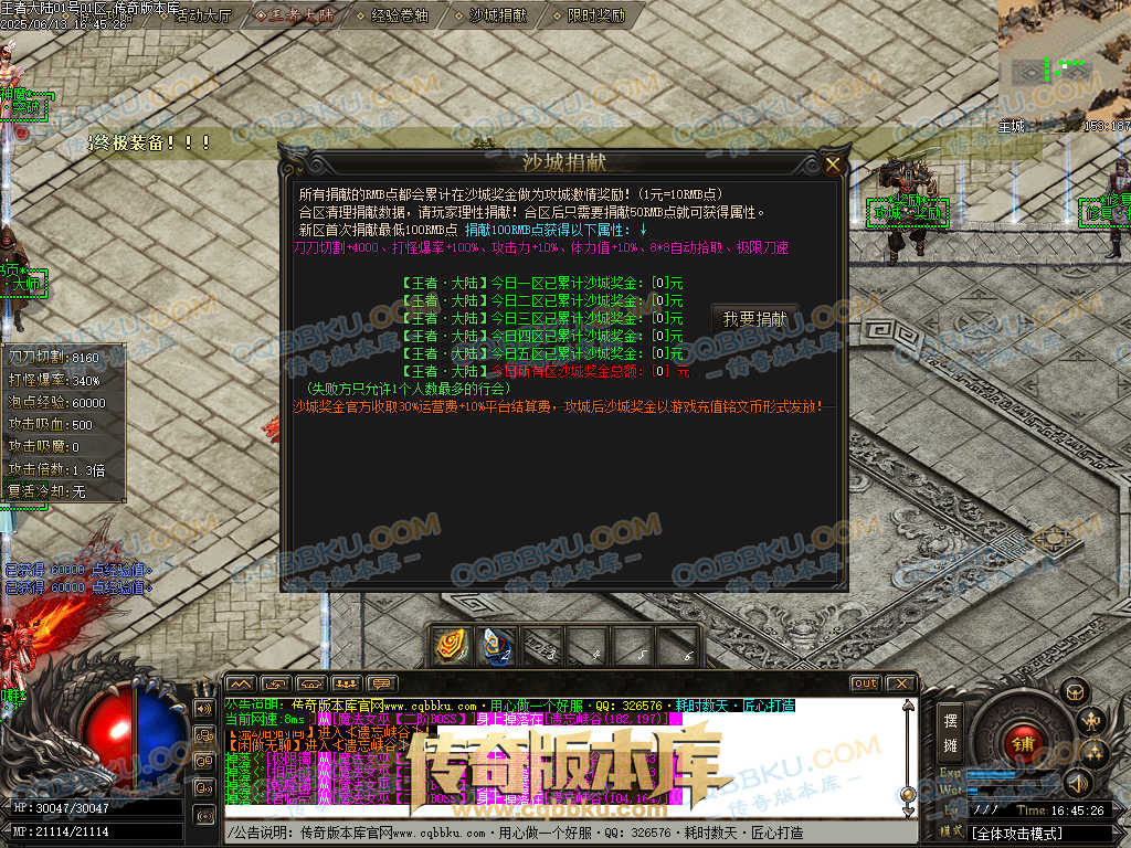 01-576独家大服王者大陆特色专属剧情打打单职业传奇版本-带假人-ESP插件-光柱-大背包-沙城捐献