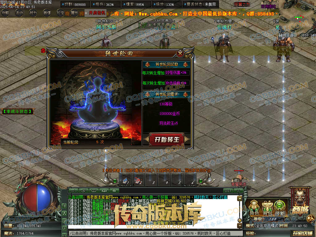 4,转生境界,人物进行转生,可获得基础属性提升,神力倍数,攻击伤害.转生需消耗(玛法碎玉.游戏产出或分解获得)