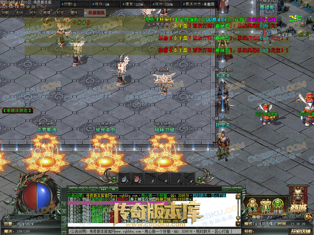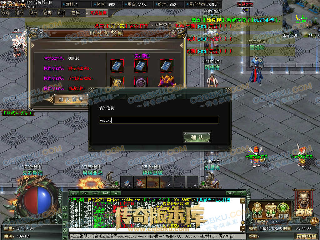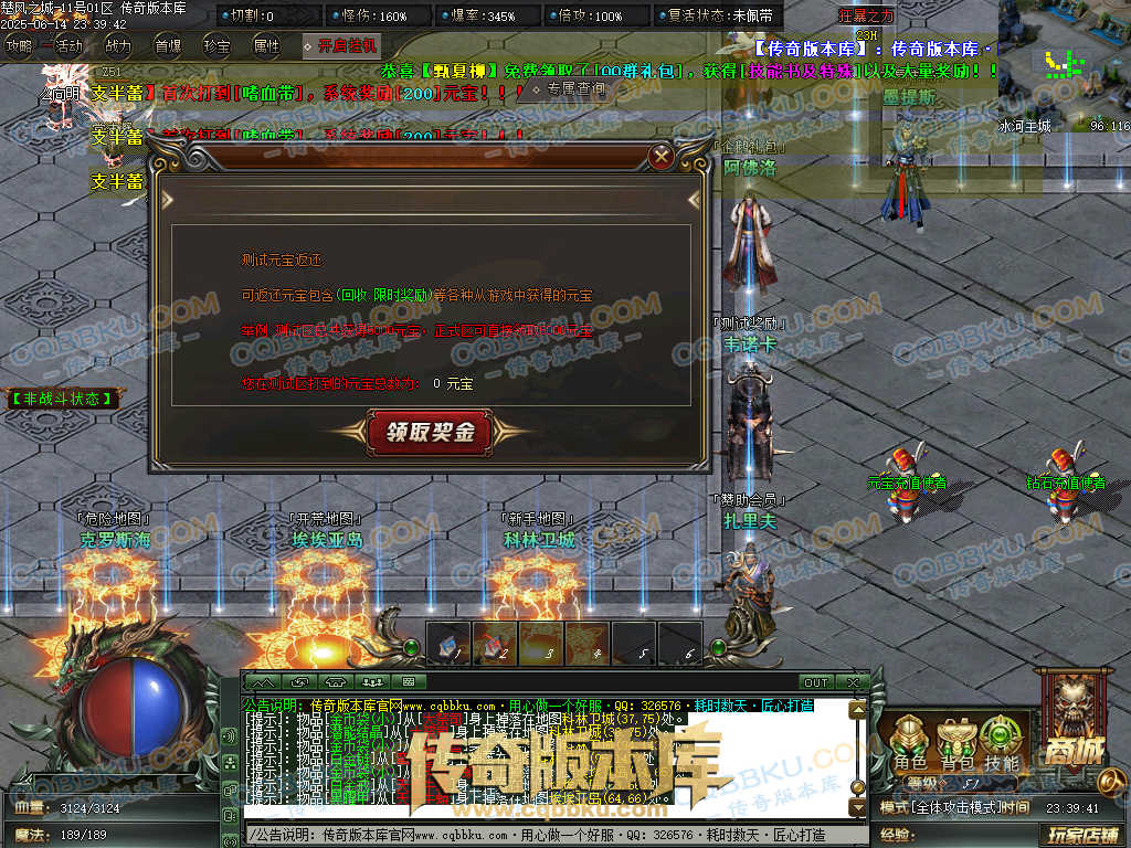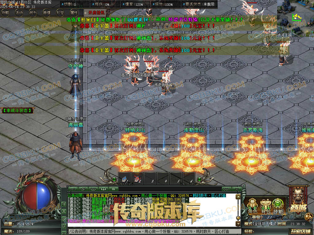 注意:A1.进游戏第一件时间,领取QQ群礼包,可以获得各种技能开荒神器,每个玩家起步必备,在开荒地图迅速提升等级,转生,称号!