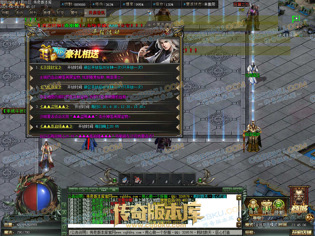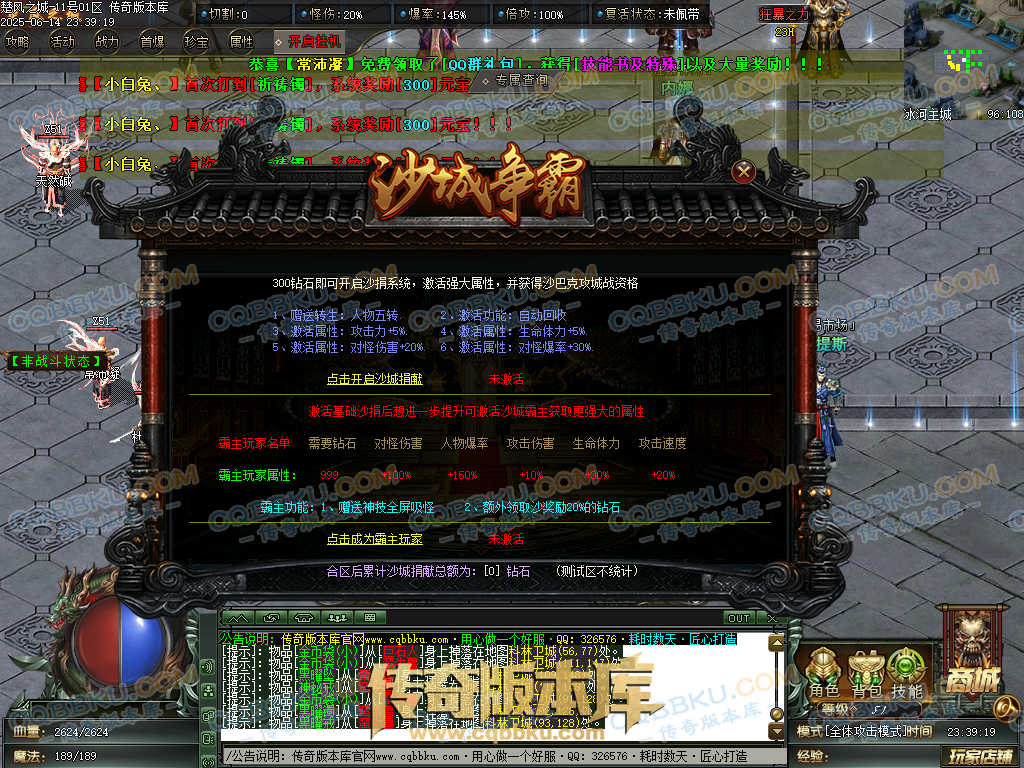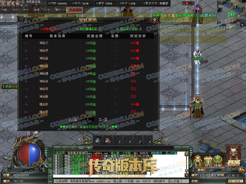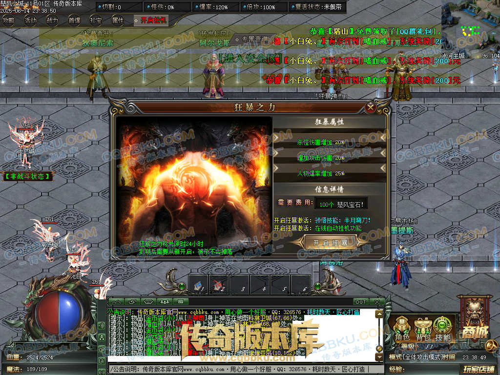 注意:A1.进游戏第一件时间,领取QQ群礼包,可以获得各种技能开荒神器,每个玩家起步必备,在开荒地图迅速提升等级,转生,称号!