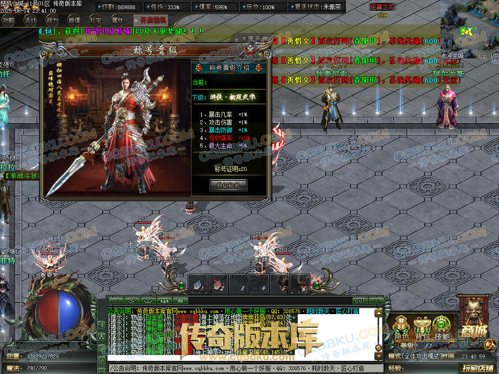 5,称号晋升,人物进行称号提升,可获得基础属性提升,对怪伤害.晋升需消耗(称号证明.游戏产出)