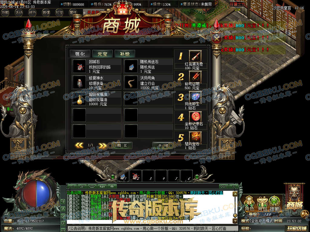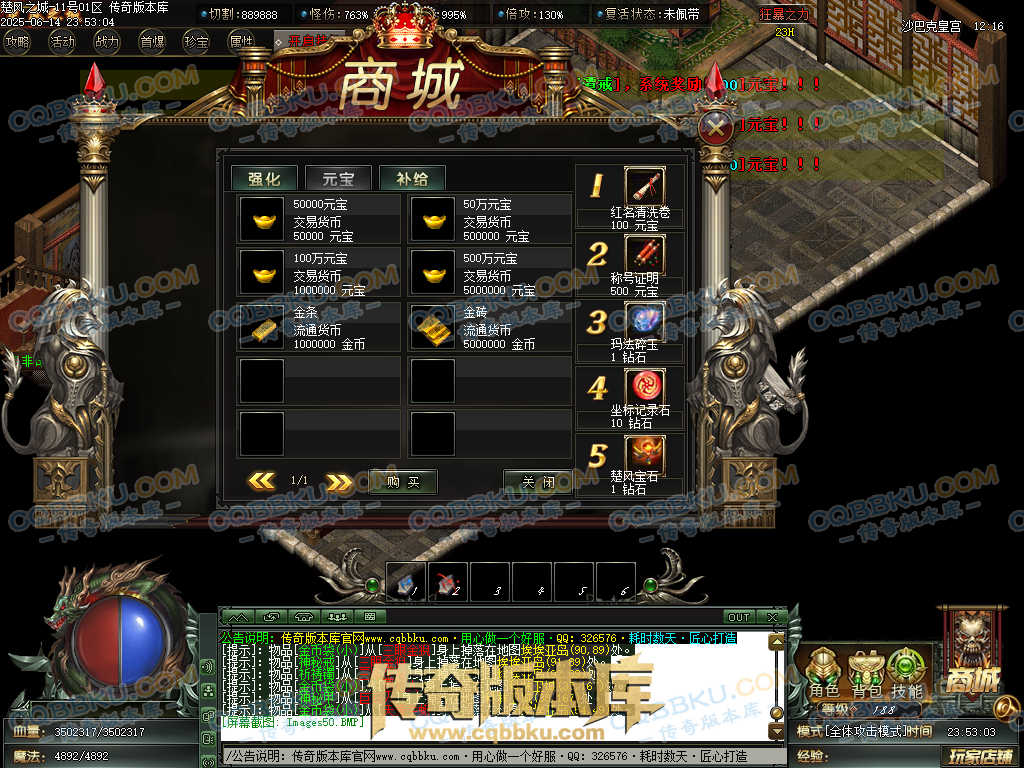 货币介绍:本版本为货币材料体系,主要就是元宝金币材料,元宝金币材料可通过击杀怪物和回收装备获得。也就是说完全可以白票!!!!