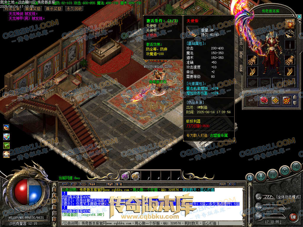 此版本共计两个大陆,一共加了8套剑甲6套首饰装备2套生肖2个称号,n个npc和怪物。
