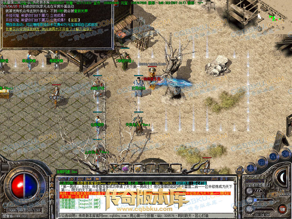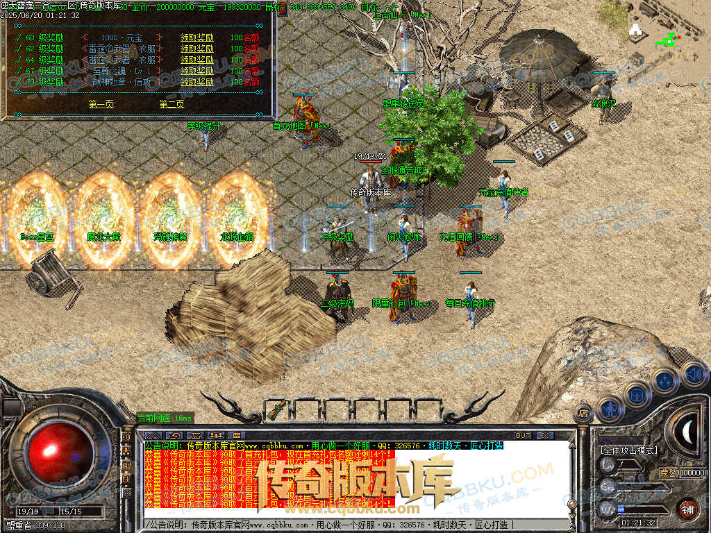【版本介绍】:开区第二天集体攻沙,新区沙奖励20W元宝!老区10W元宝!
