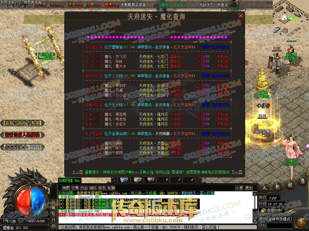 升级方式:各大陆魔化NPC免费合成,查询坐标 点击BOSS查询牌