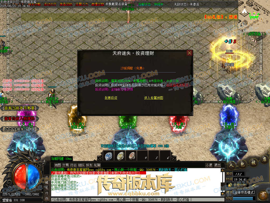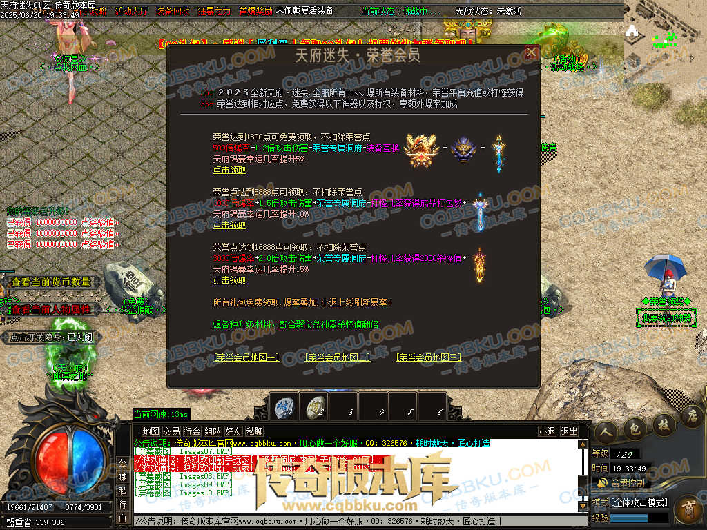 0元白嫖玩家:1.领取QQ礼包→2.领取背包神器→3.领取积分会员礼包-全屏吸怪→4.优先合出 (天府结义)可以升级2300级 (土城其余合成根据自身元宝情况而定)一句话:攒荣誉领取礼包,私人洞府荣誉暴率很高
