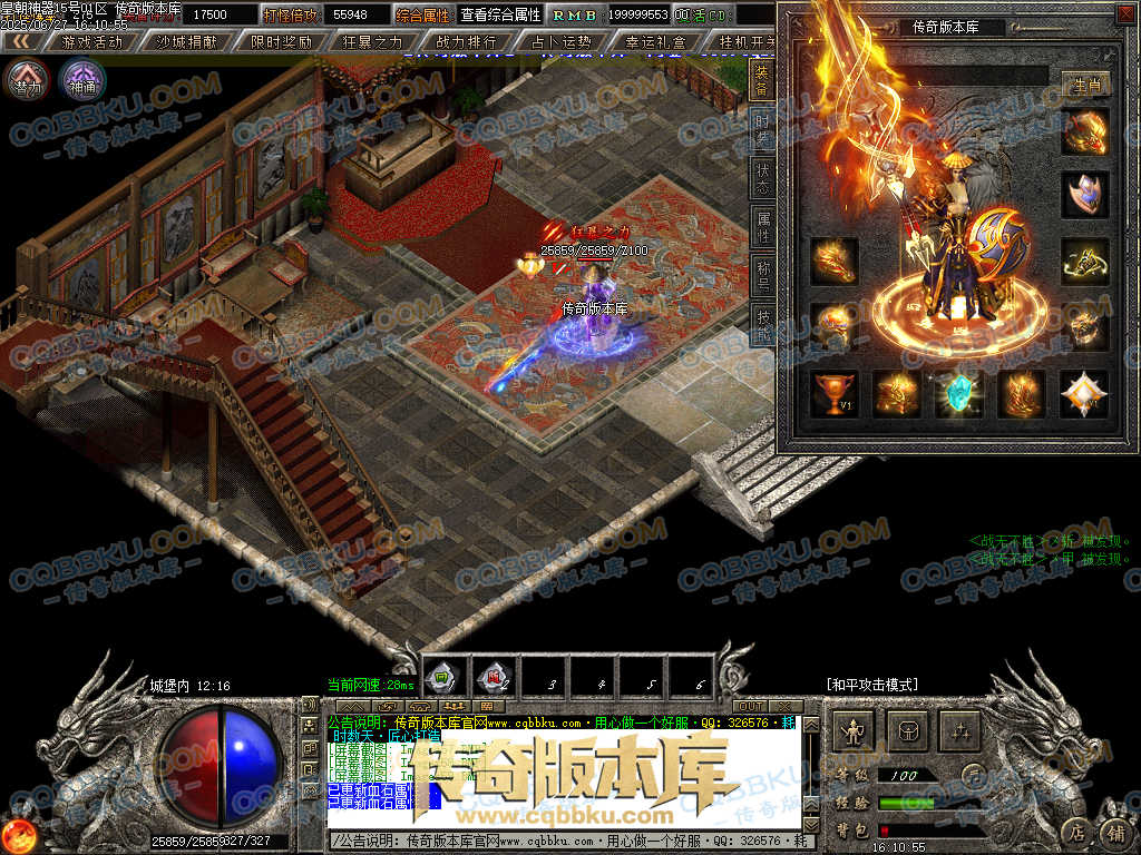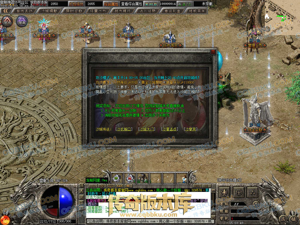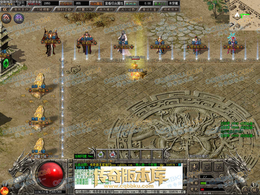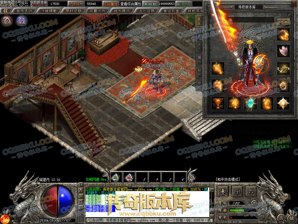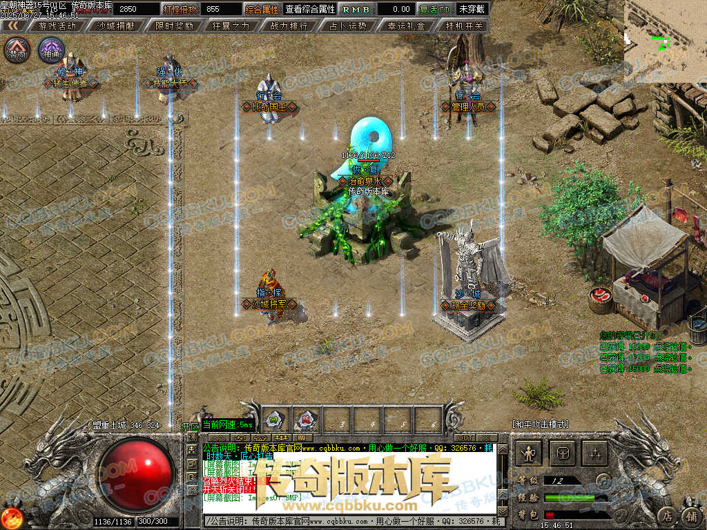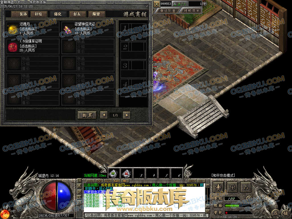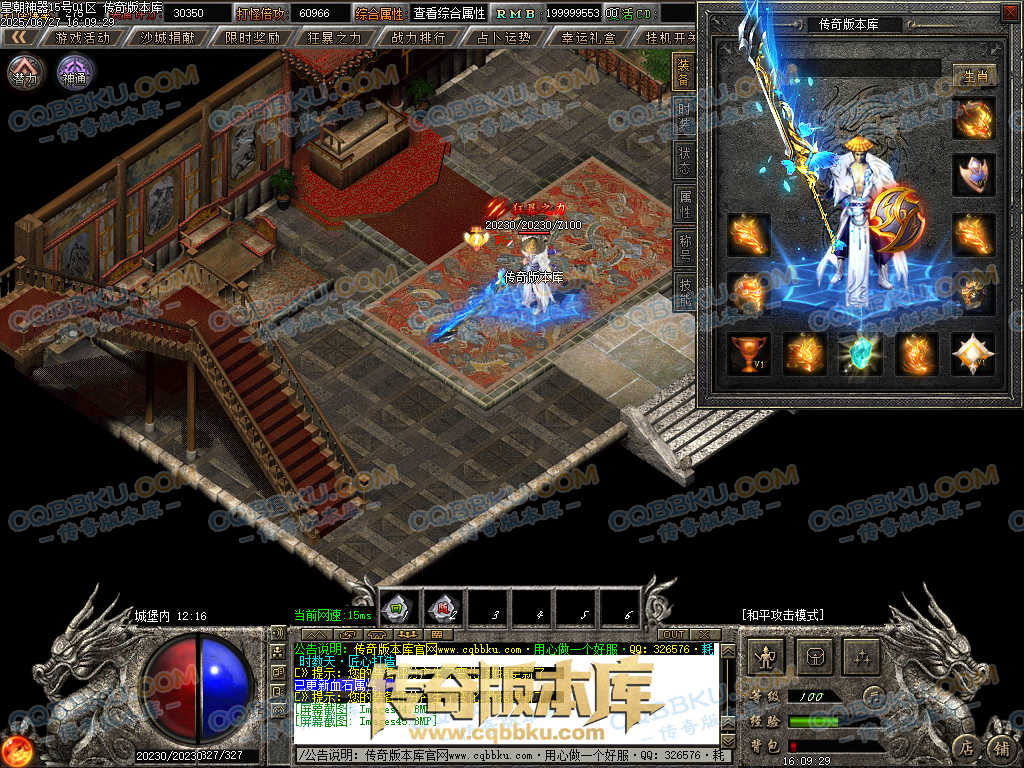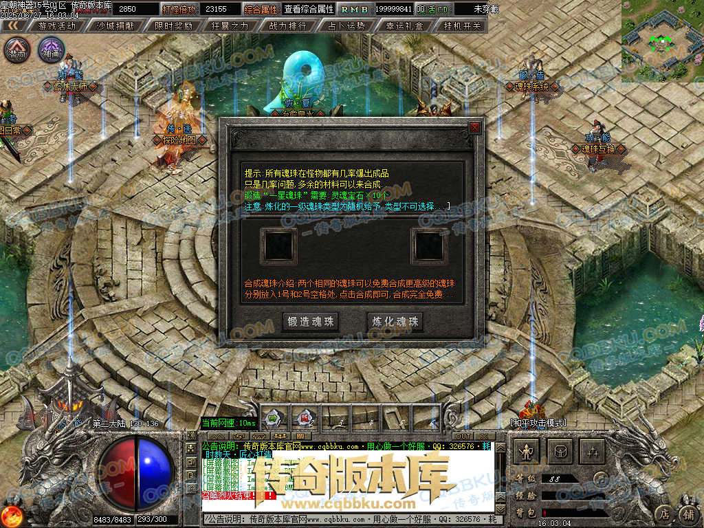 1:上线进行QQ礼包码、微信礼包码兑换:cqbbku 领取公益大礼包;赠送6大特殊、圣杯、符文、神章、斗笠、盾牌、血石;上线赠送自动捡物