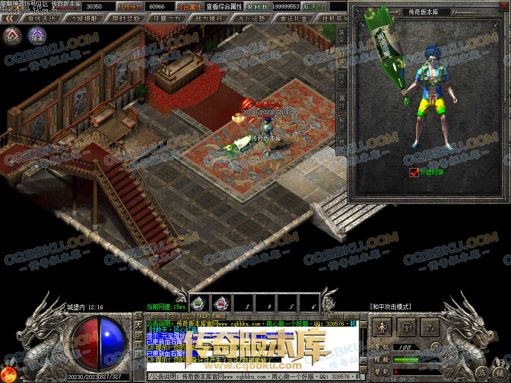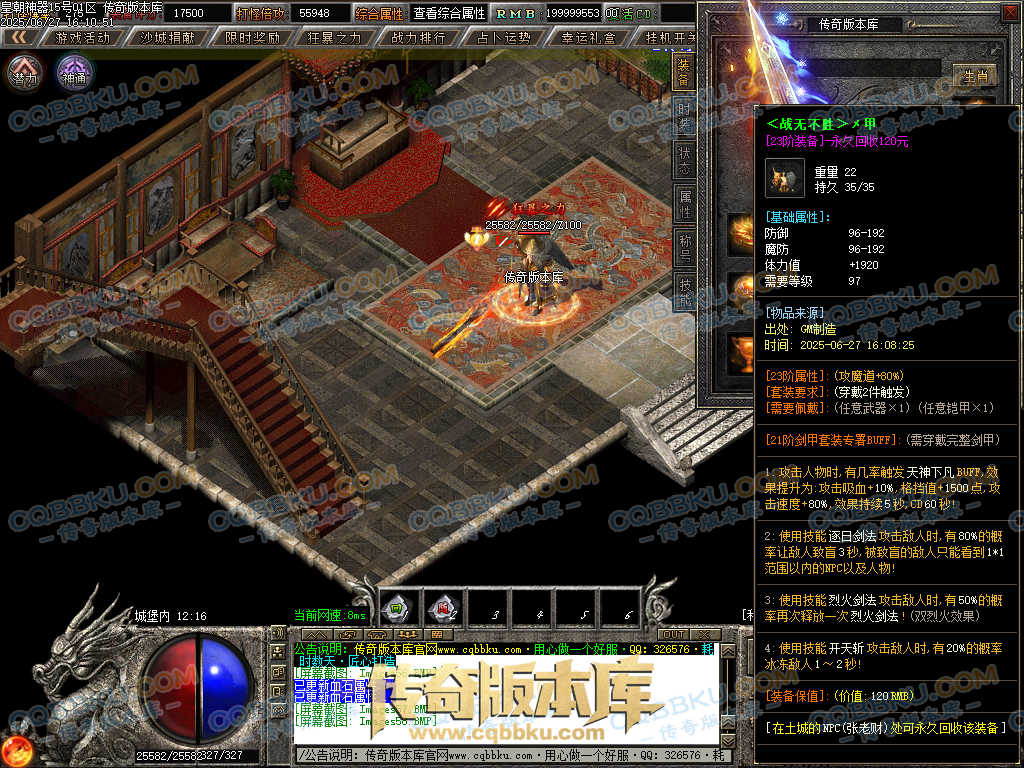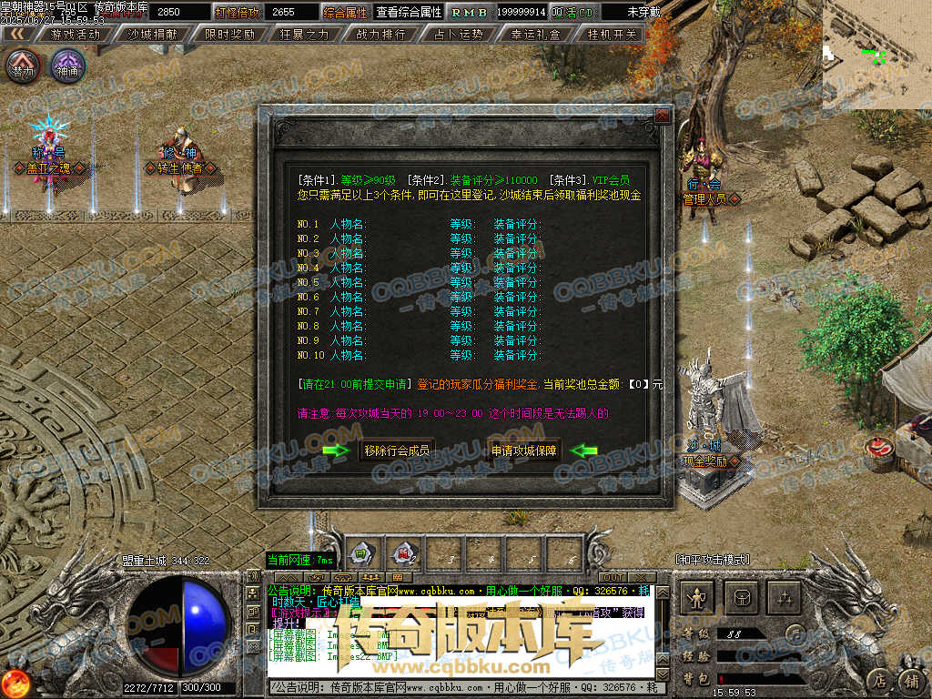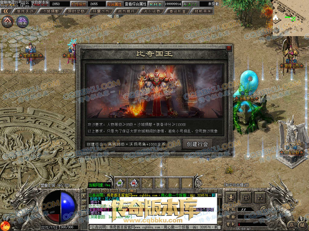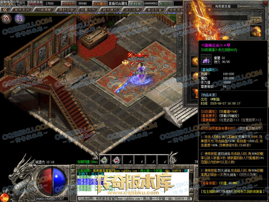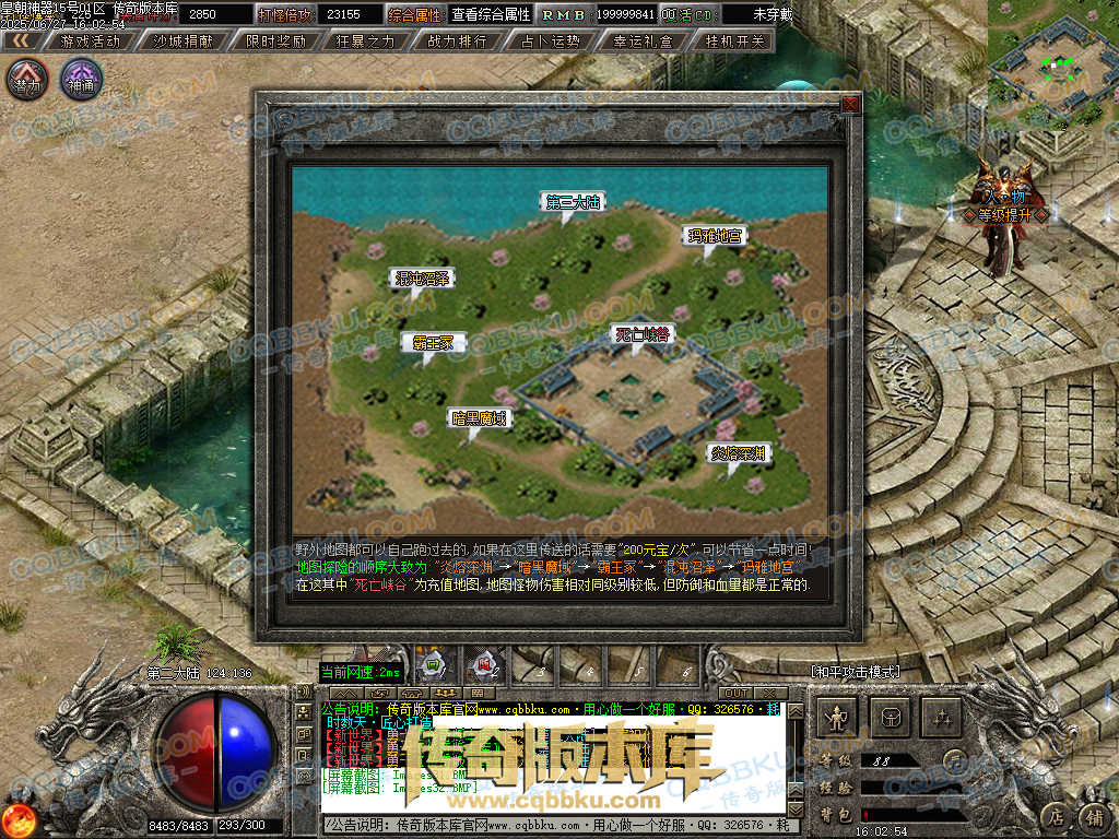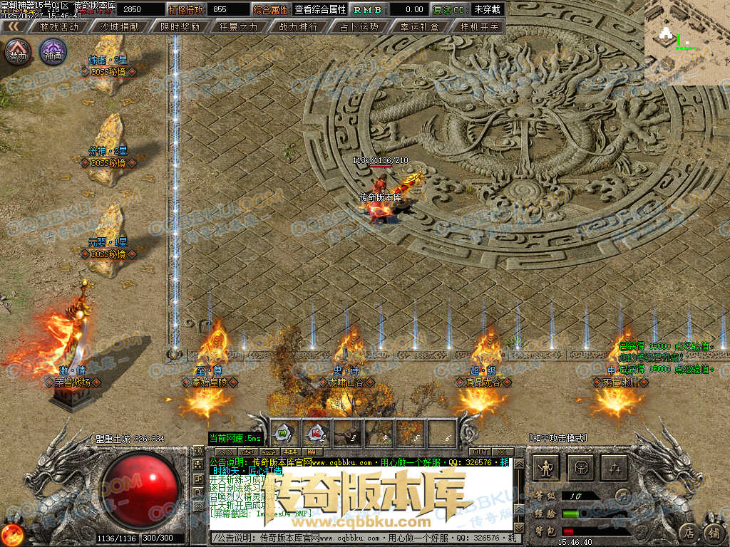 1:上线进行QQ礼包码、微信礼包码兑换:cqbbku 领取公益大礼包;赠送6大特殊、圣杯、符文、神章、斗笠、盾牌、血石;上线赠送自动捡物