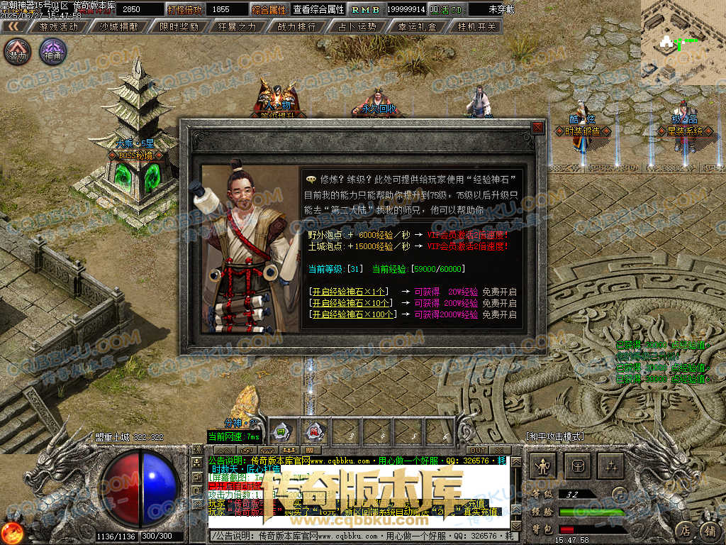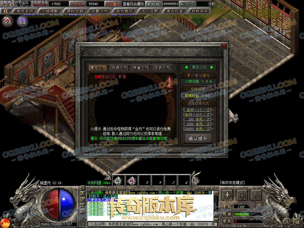 4:剩下的金币提升称号,增加打怪倍攻和人物爆率
