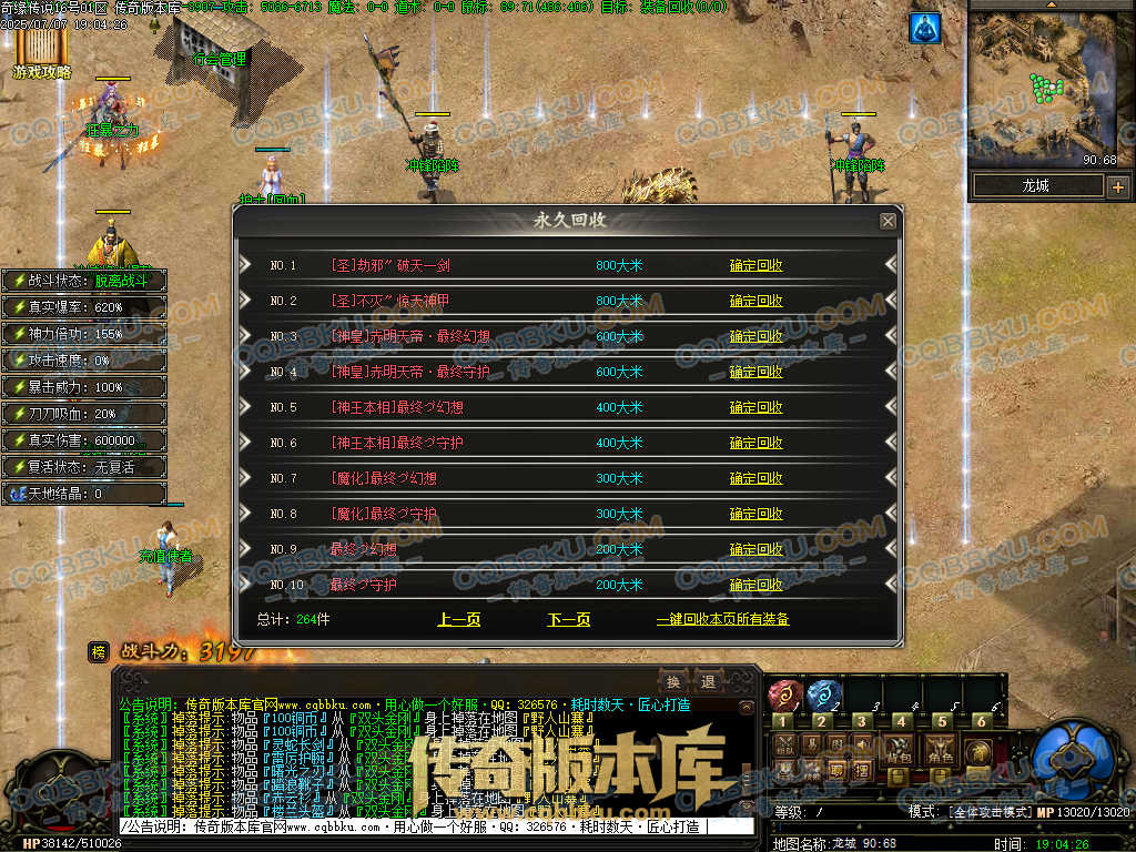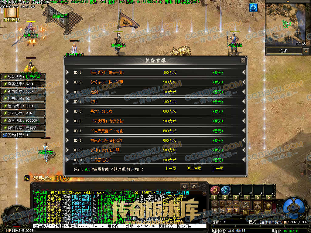 01-627独家奇缘传说天地劫专属神器单职业传奇服务端-带假人光柱-装备觉醒 | ||