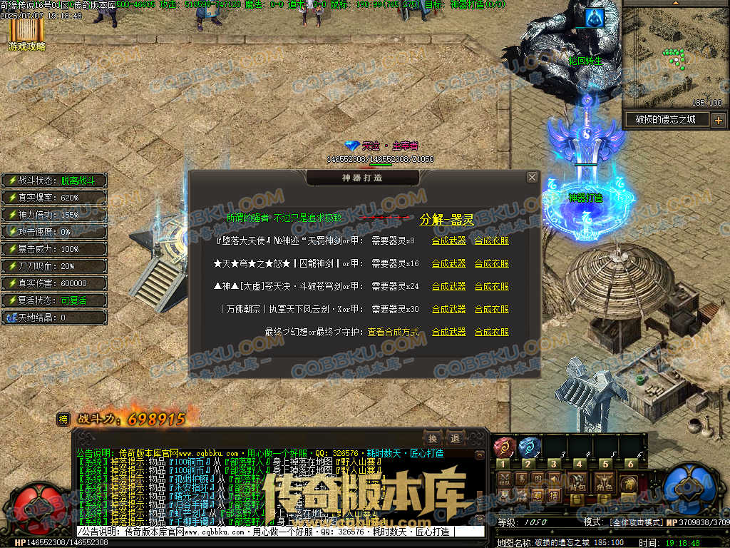 01-627独家奇缘传说天地劫专属神器单职业传奇服务端-带假人光柱-装备觉醒