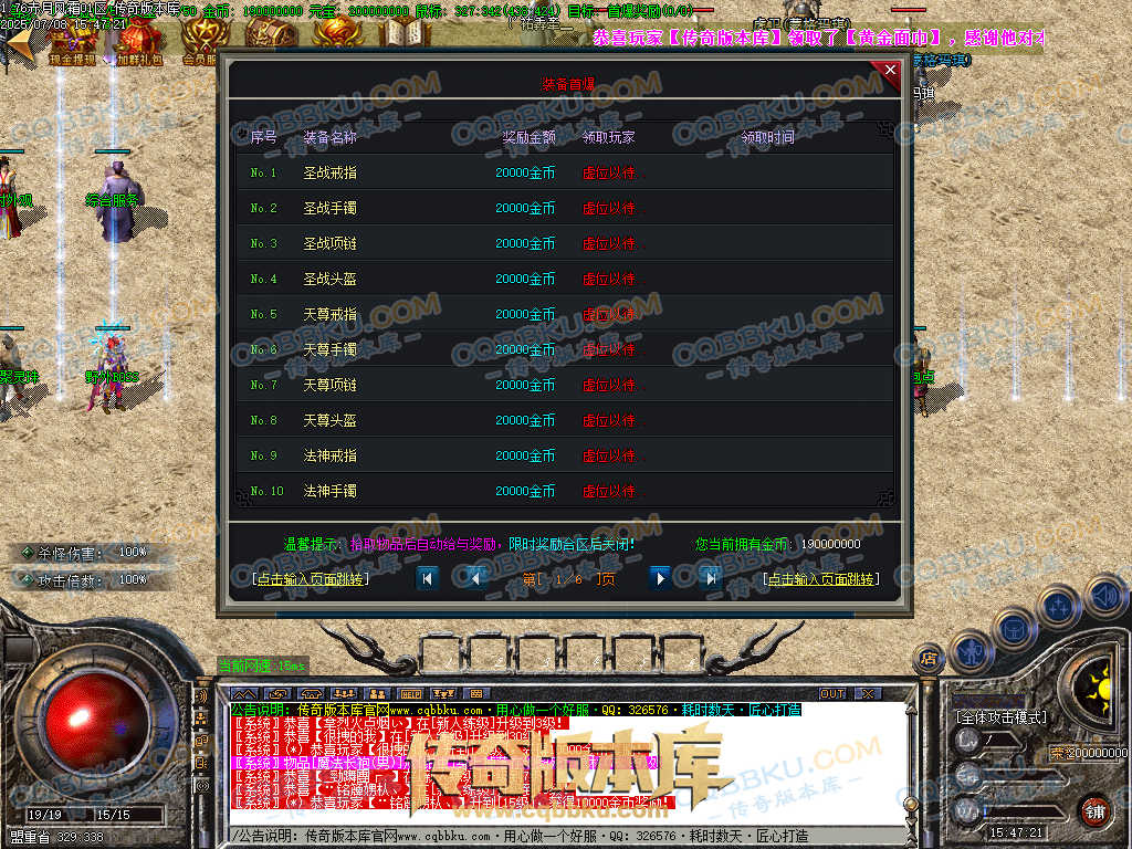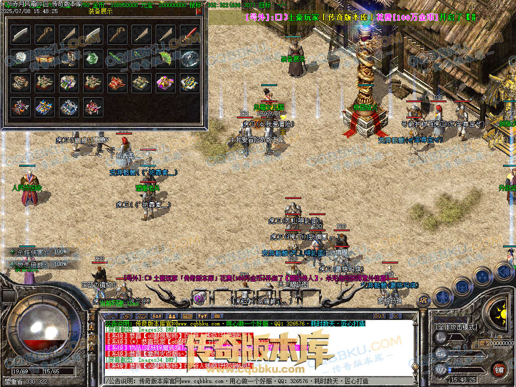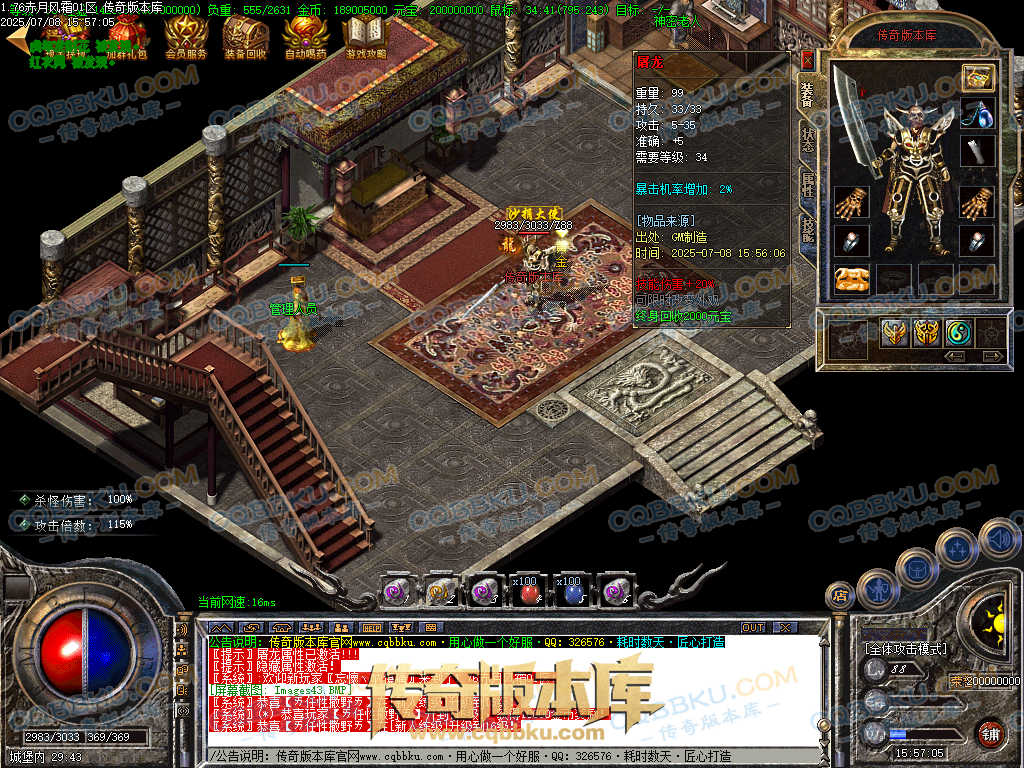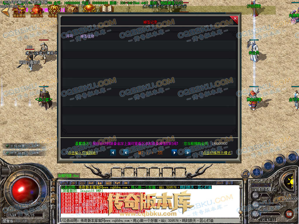 温馨提示:本版本属耐玩型版本,一日终极玩家绕行,所有装备全靠打,爆率根据装备等级设置,没有任何合成