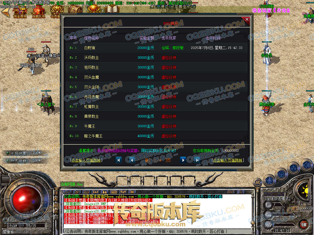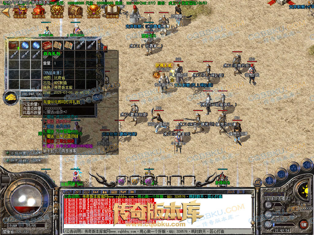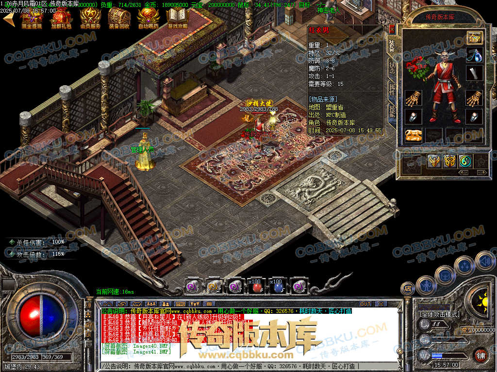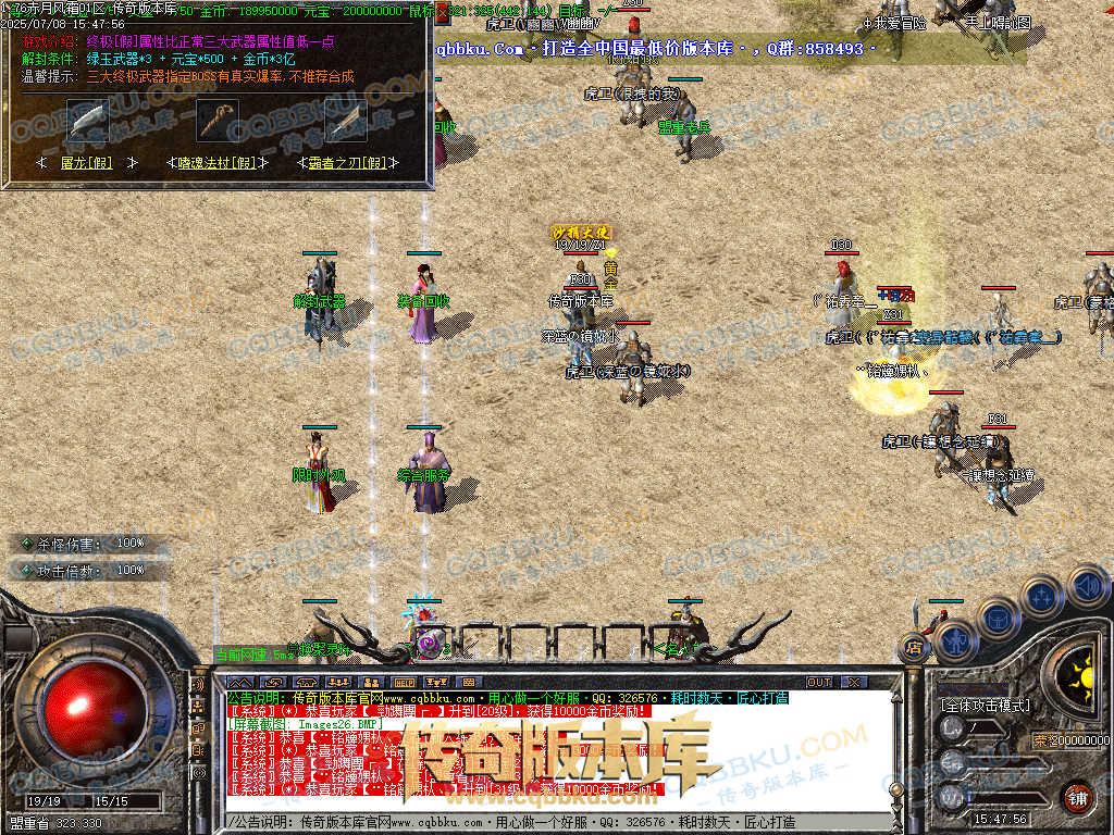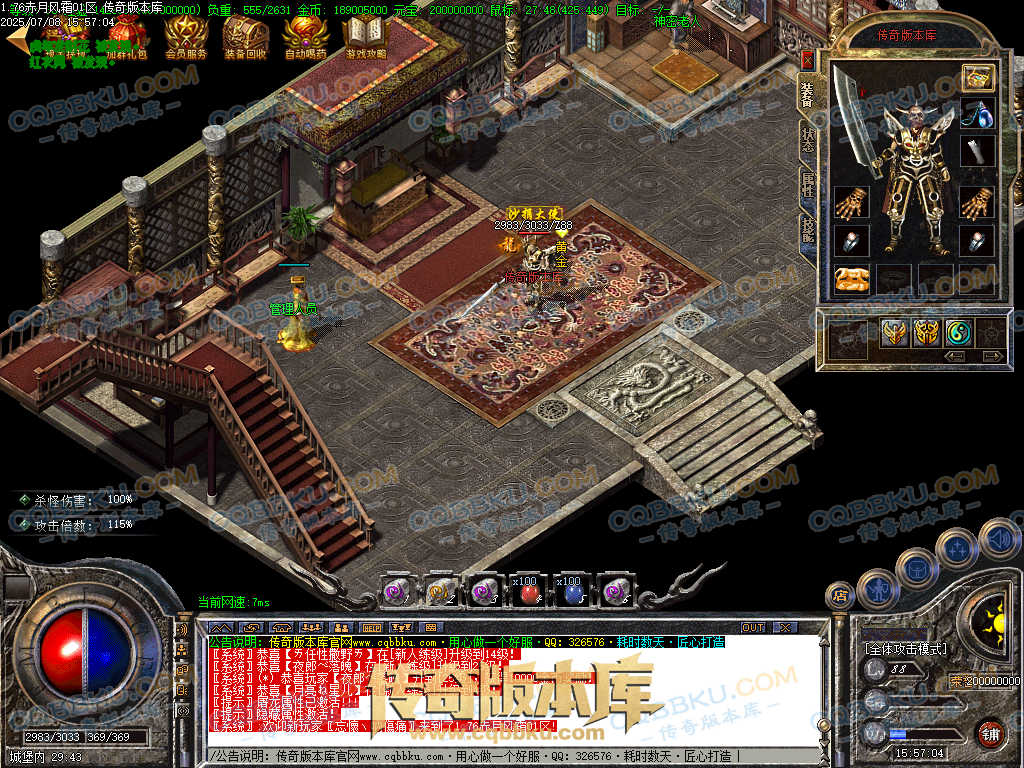 温馨提示:本版本属耐玩型版本,一日终极玩家绕行,所有装备全靠打,爆率根据装备等级设置,没有任何合成