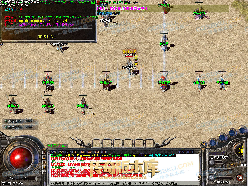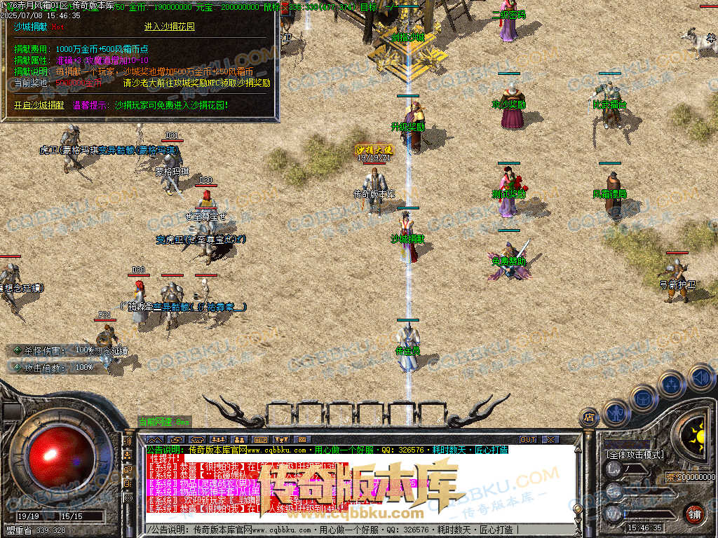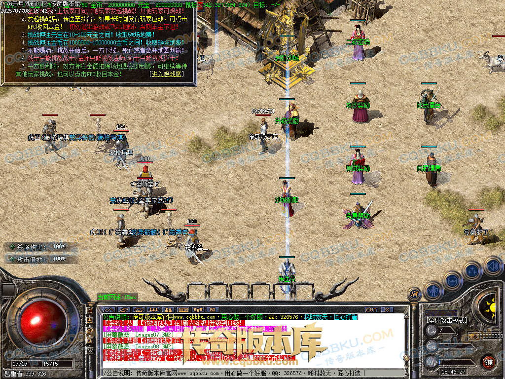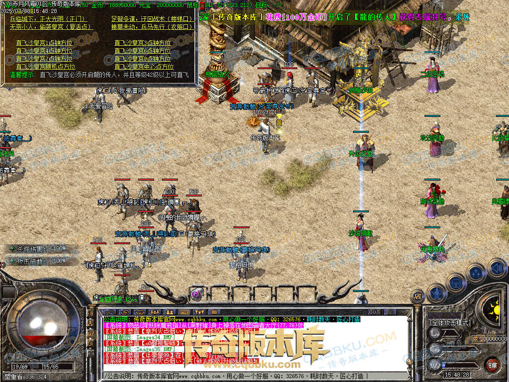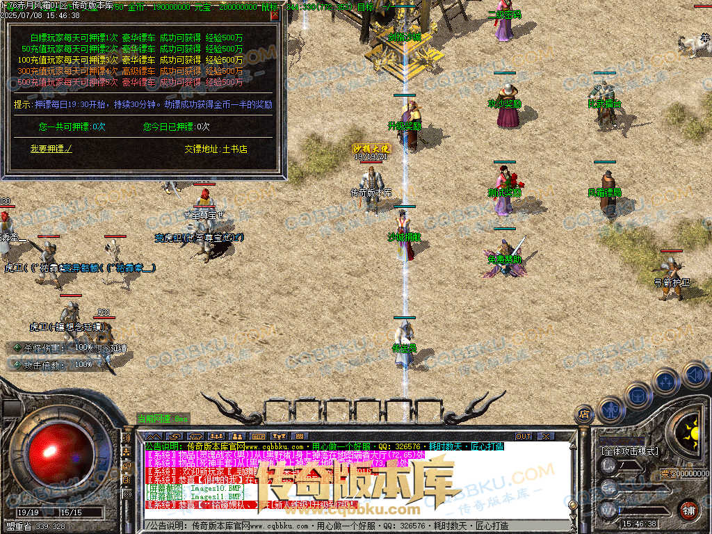 6、老区每周2,4,6进行沙城战争,奖励2000万金币+沙捐金币。沙战结束后沙老大去土城沙城奖励NPC领取。