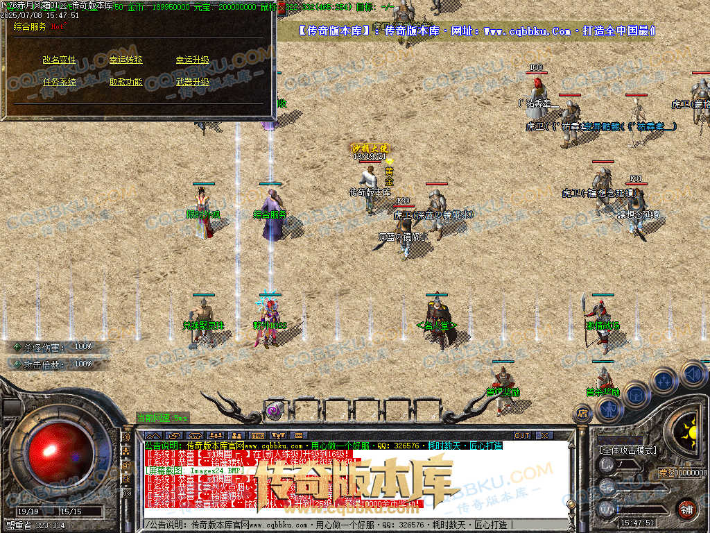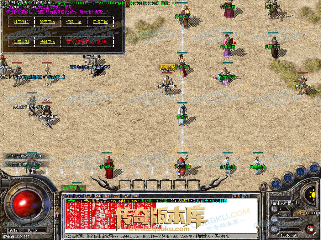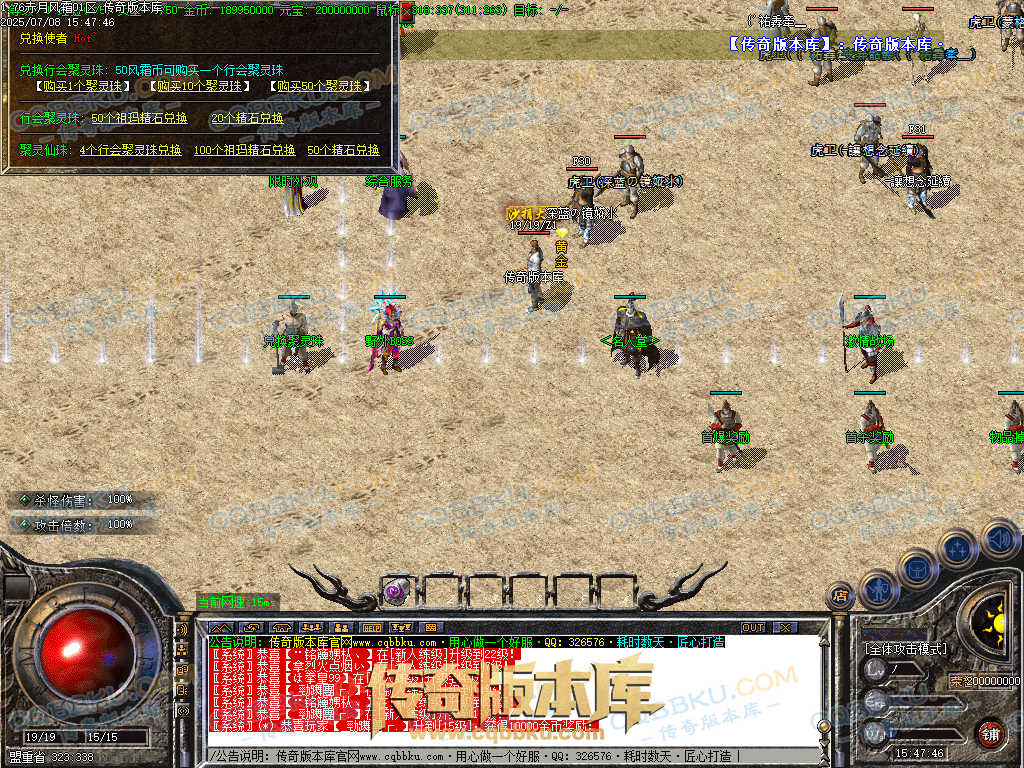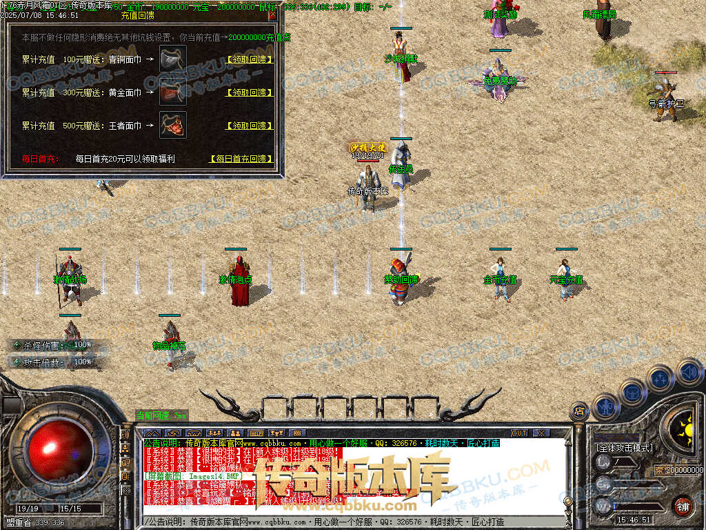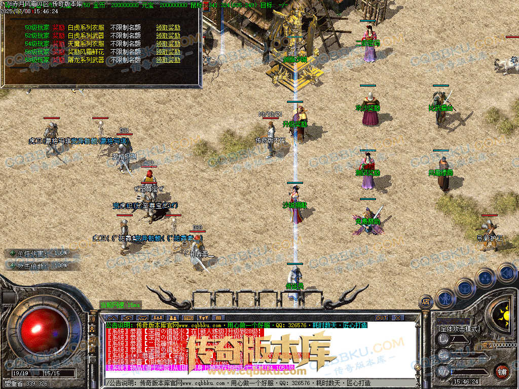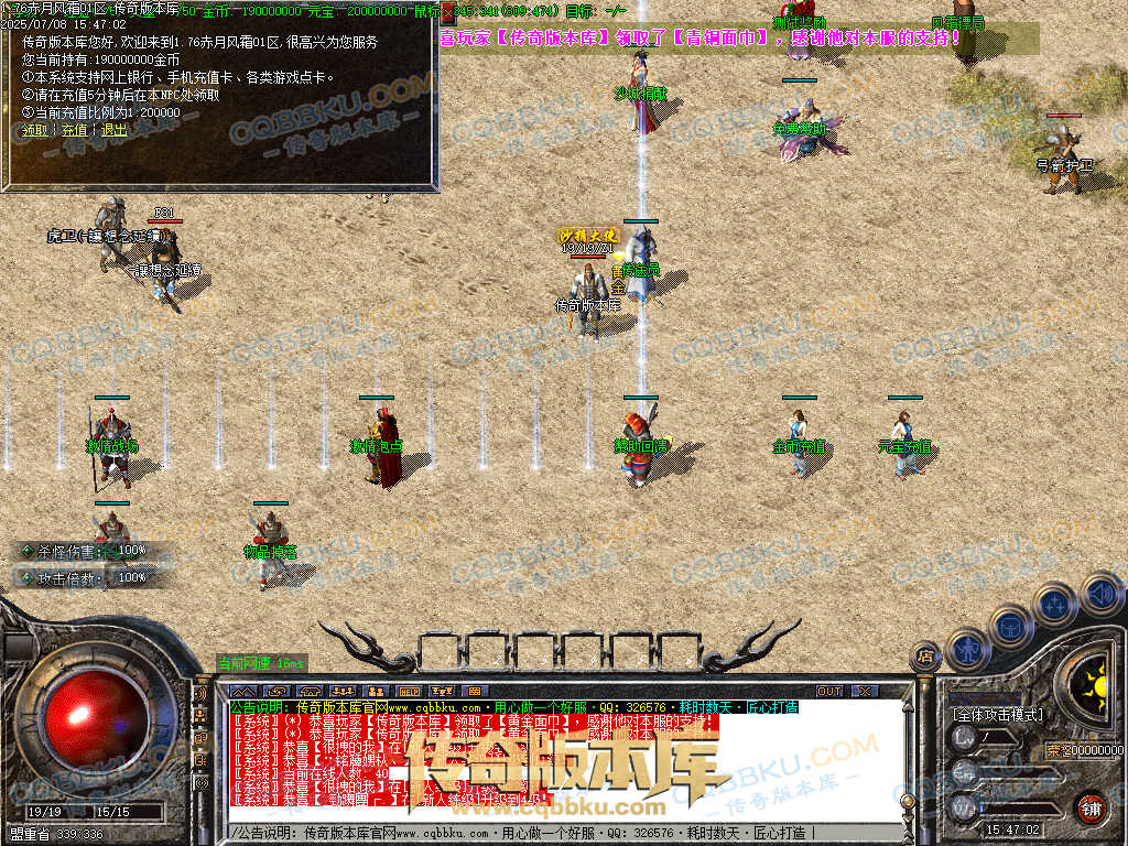 6、老区每周2,4,6进行沙城战争,奖励2000万金币+沙捐金币。沙战结束后沙老大去土城沙城奖励NPC领取。