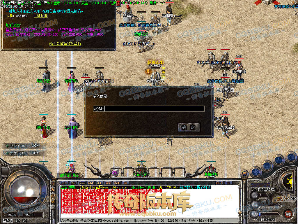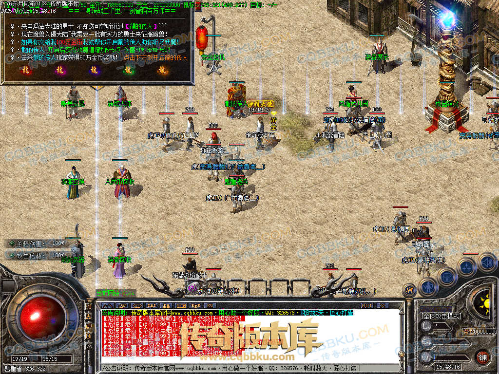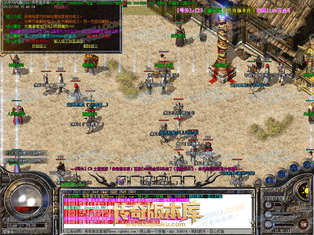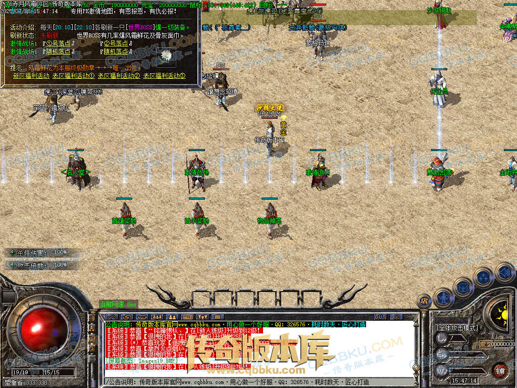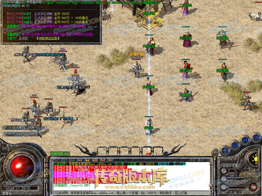 6、老区每周2,4,6进行沙城战争,奖励2000万金币+沙捐金币。沙战结束后沙老大去土城沙城奖励NPC领取。