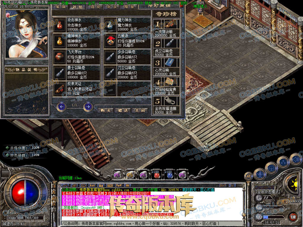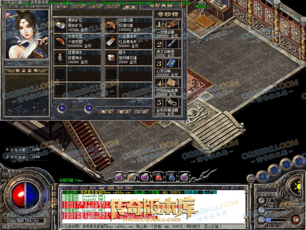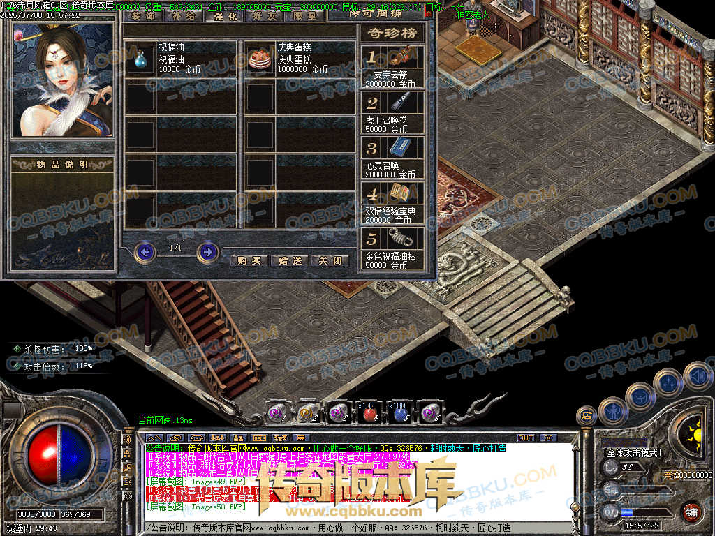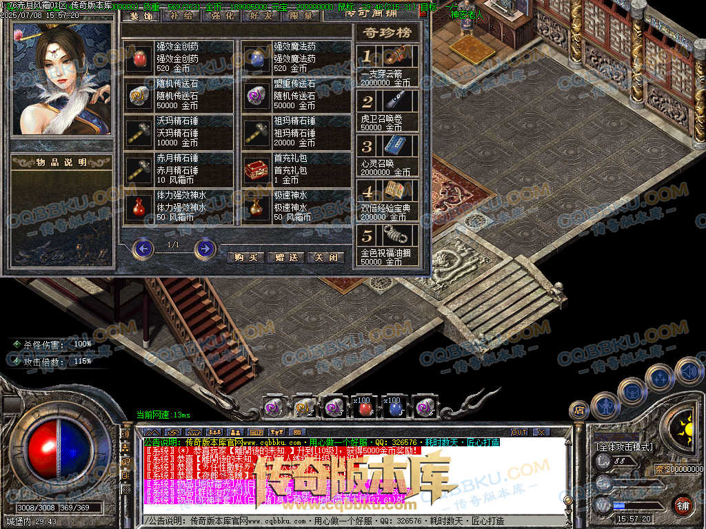 8、本服最高等级58级,自动挂机地图可升到55级,55级后可在打金玩家处买聚灵仙珠,57级-58级分别赠送属性1-1。