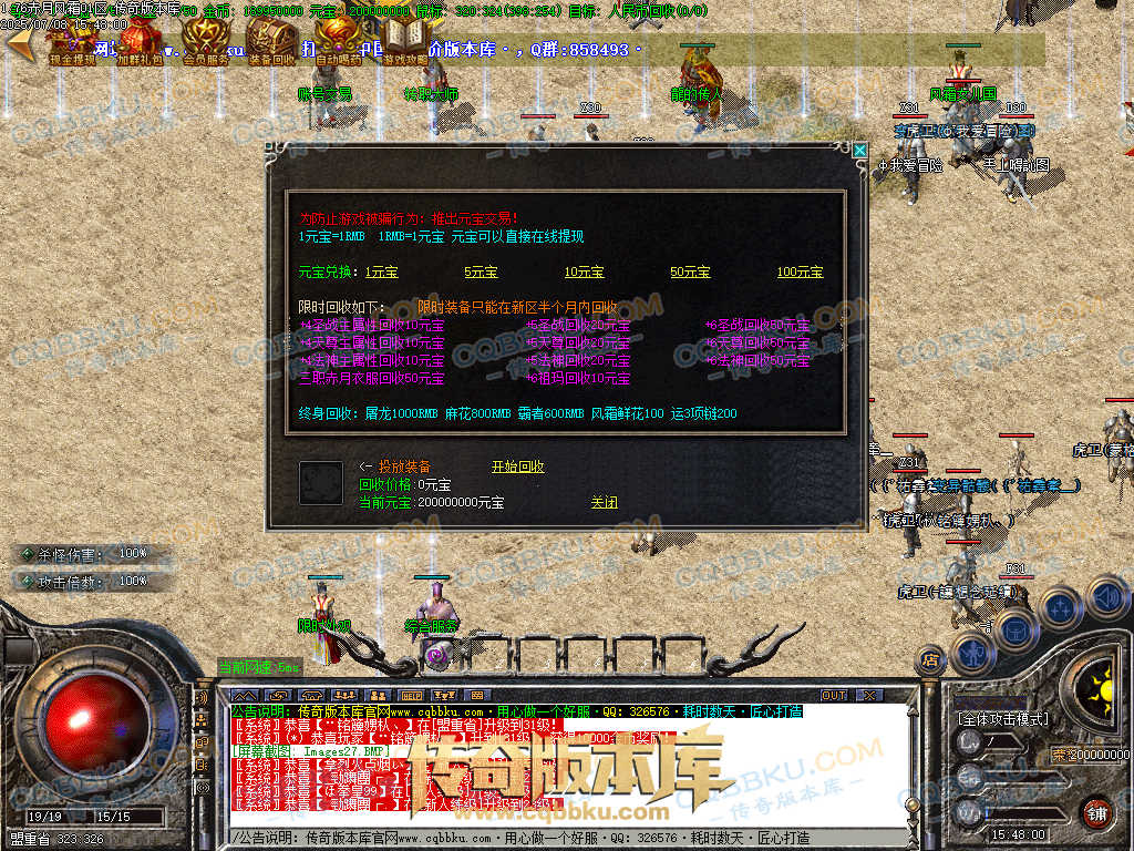 1、金 币:游戏主要消费货币之一,充值比例1:20W,可通过打装备回收、实物、买卖装备 、沙巴克奖励等方式获取;
