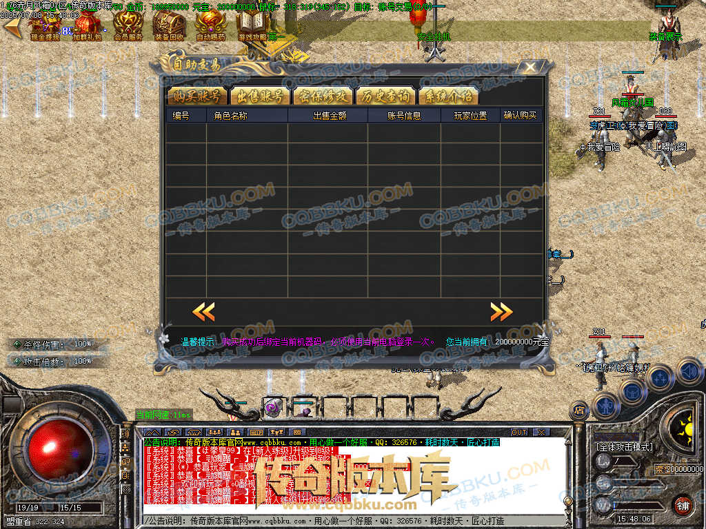 2、摆摊地图支持金币和元宝交易,方便打金玩家赚钱!!!