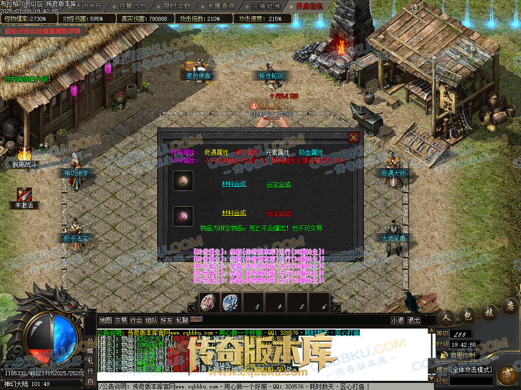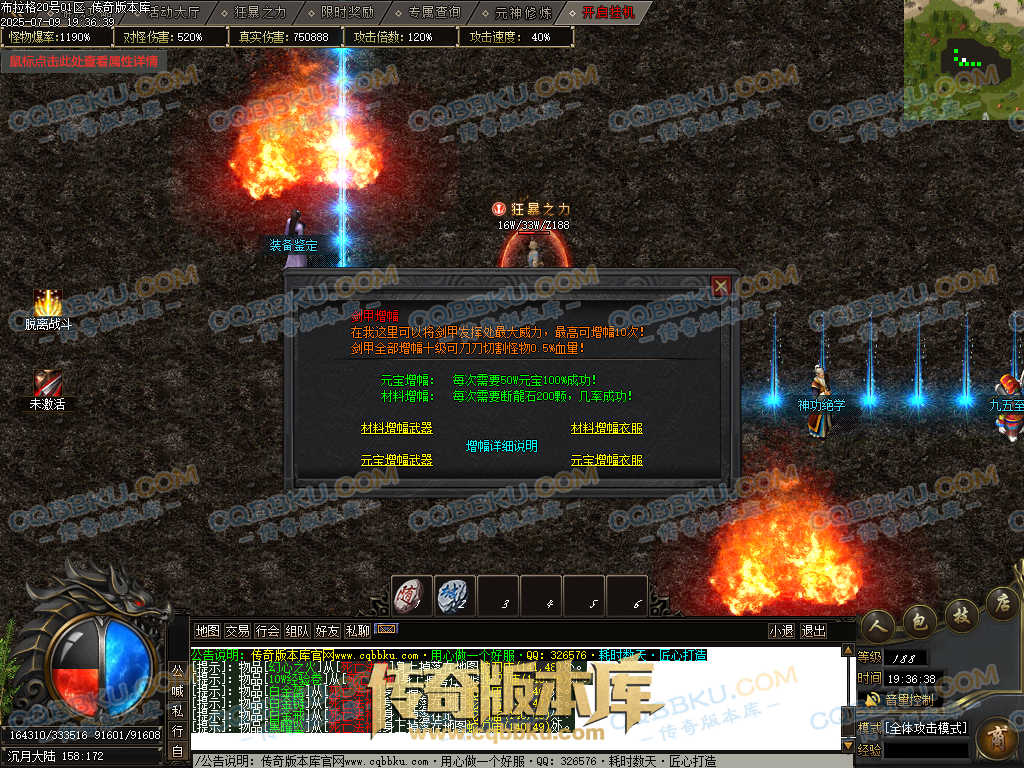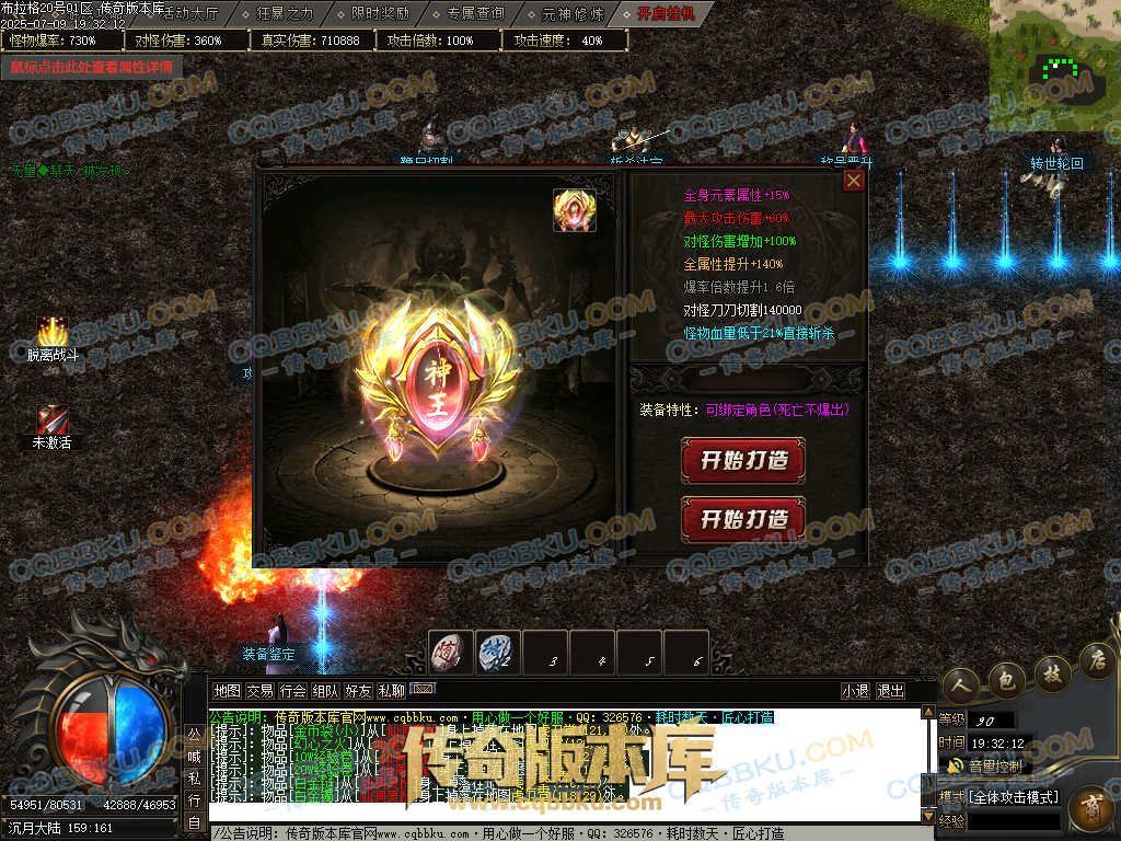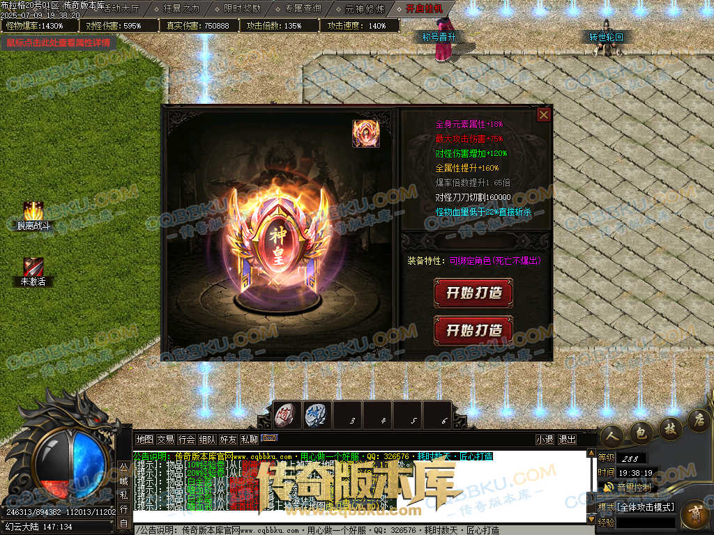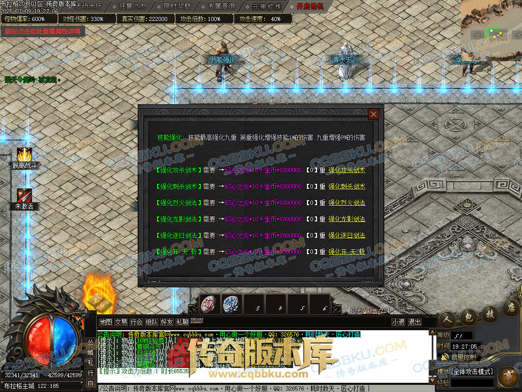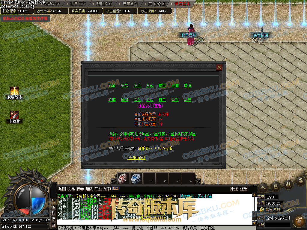 转世轮回:可以转至30转(需要材料转生) 剑甲增幅:元宝百分百成功率!