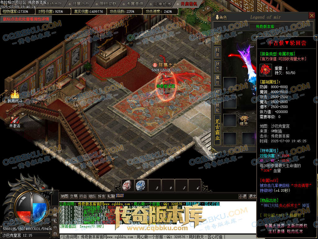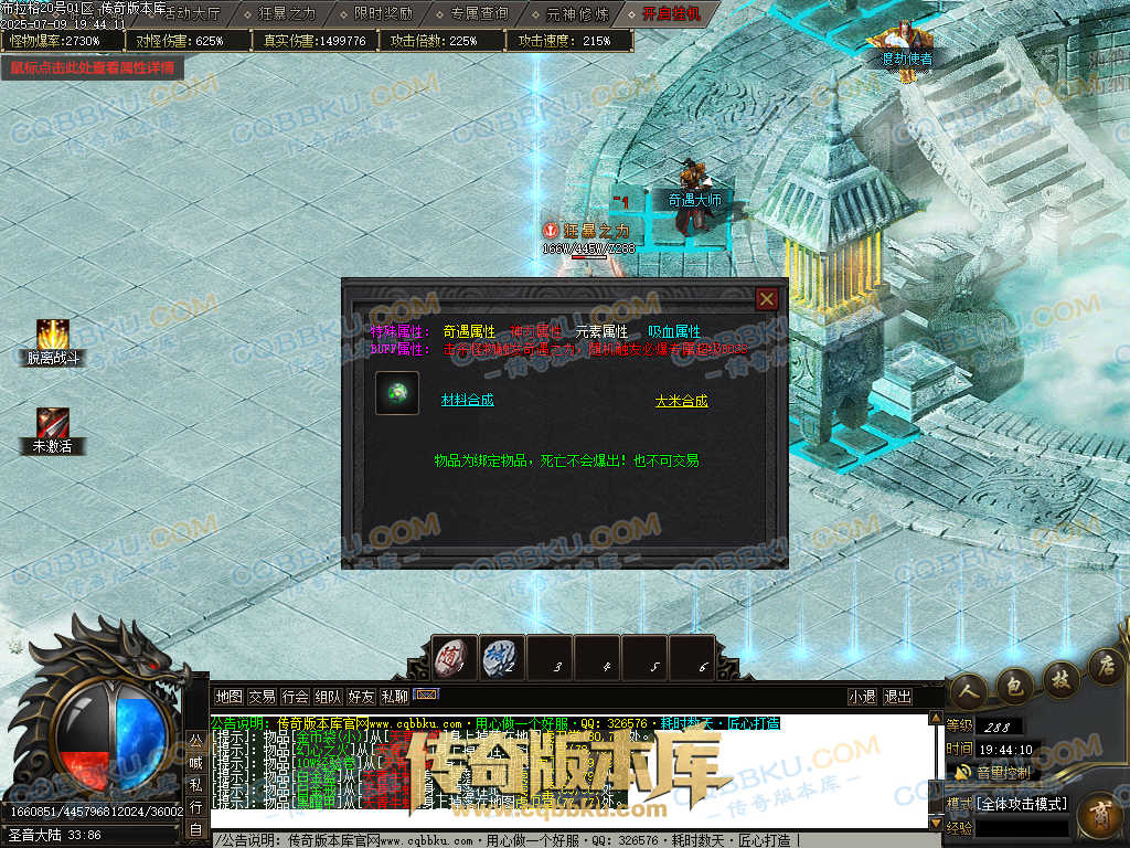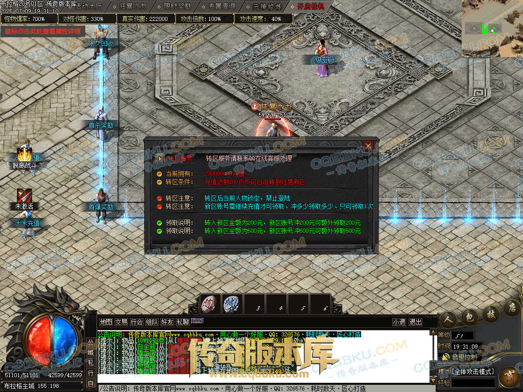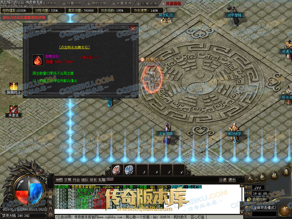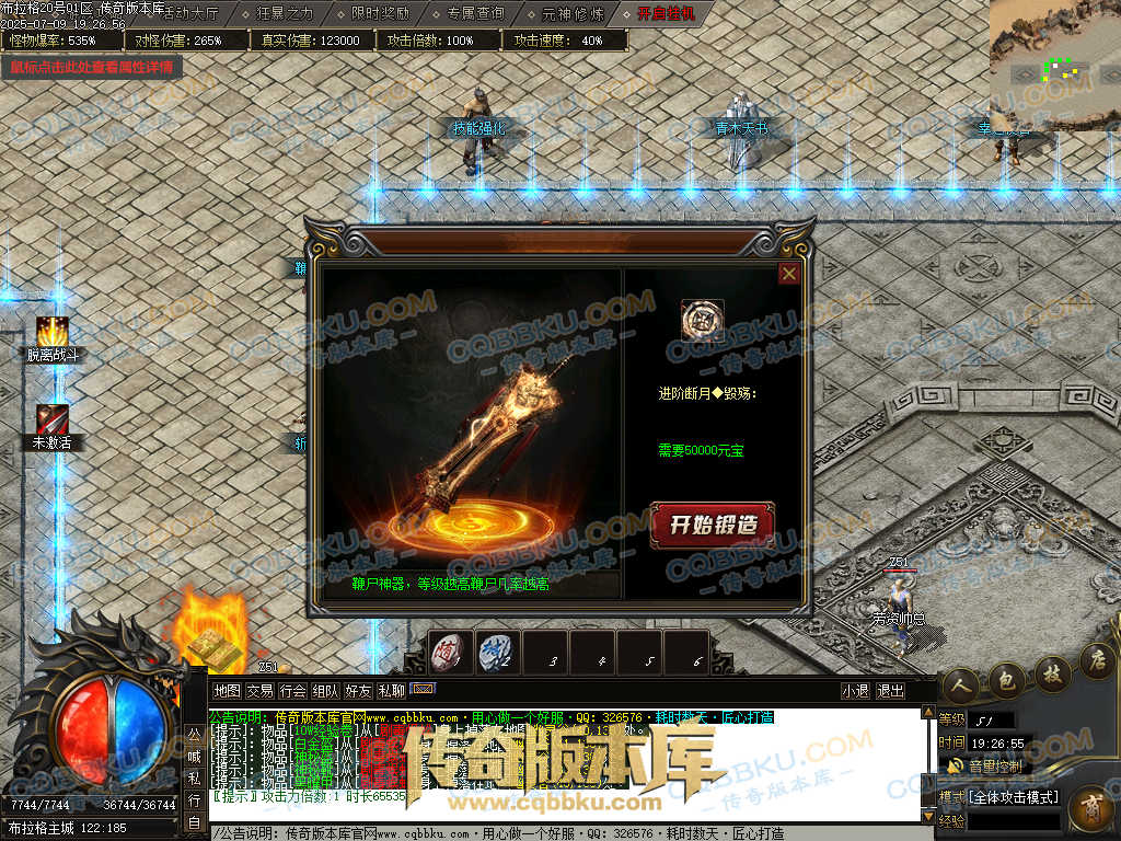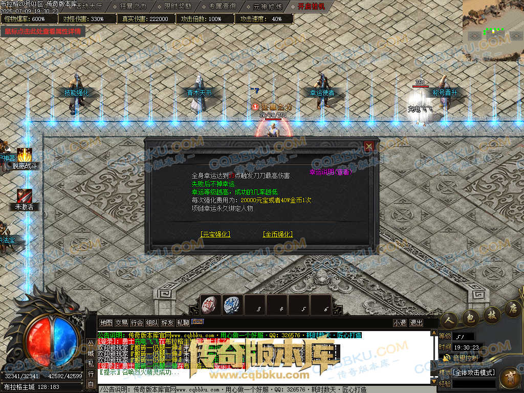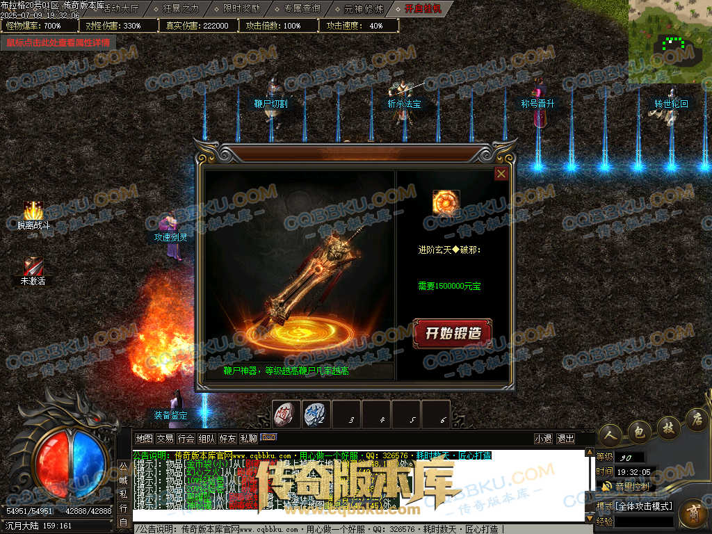 转世轮回:可以转至30转(需要材料转生) 剑甲增幅:元宝百分百成功率!