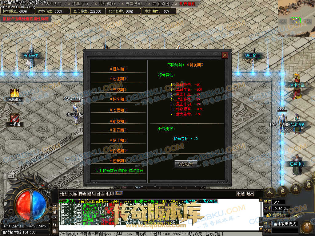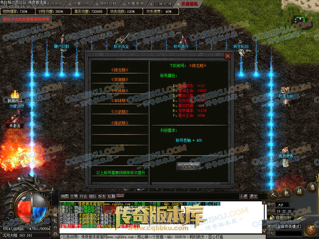 称号晋升:称号卷轴商城购买! 转世轮回:达到对应的要求即可转世!