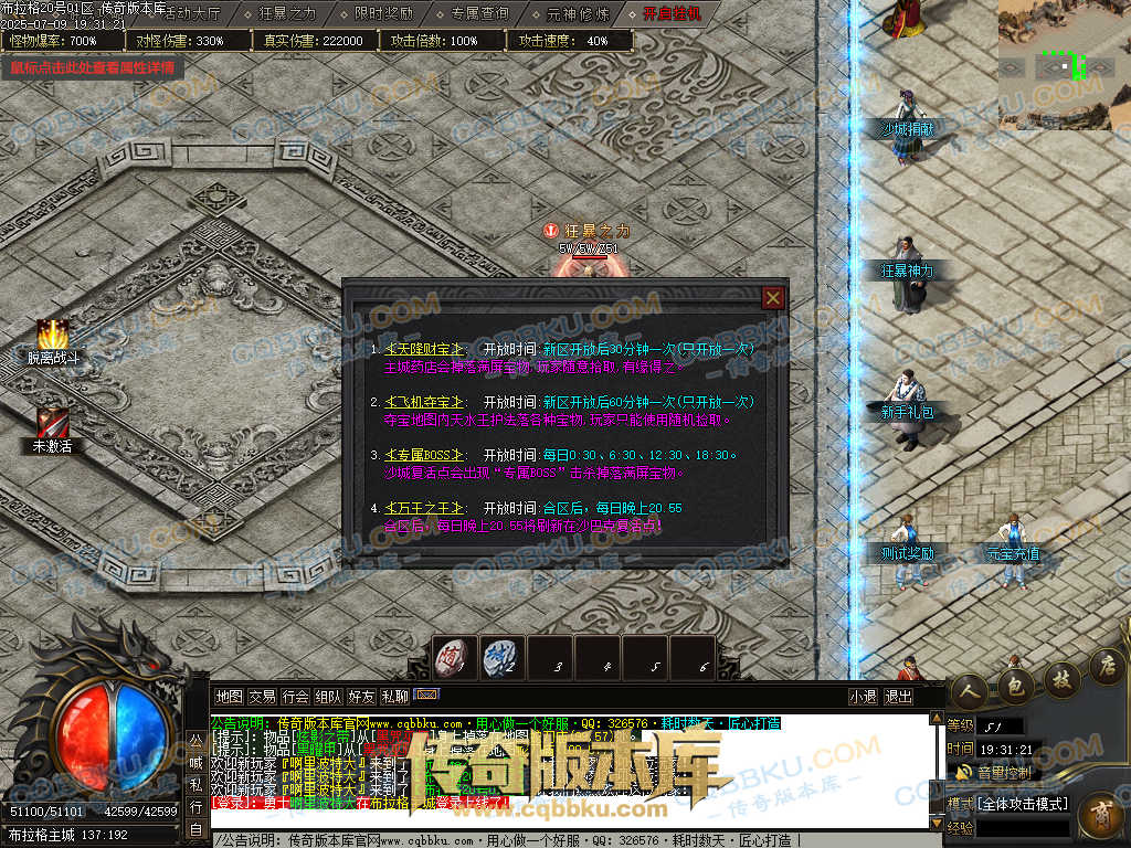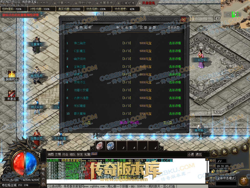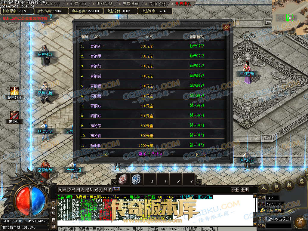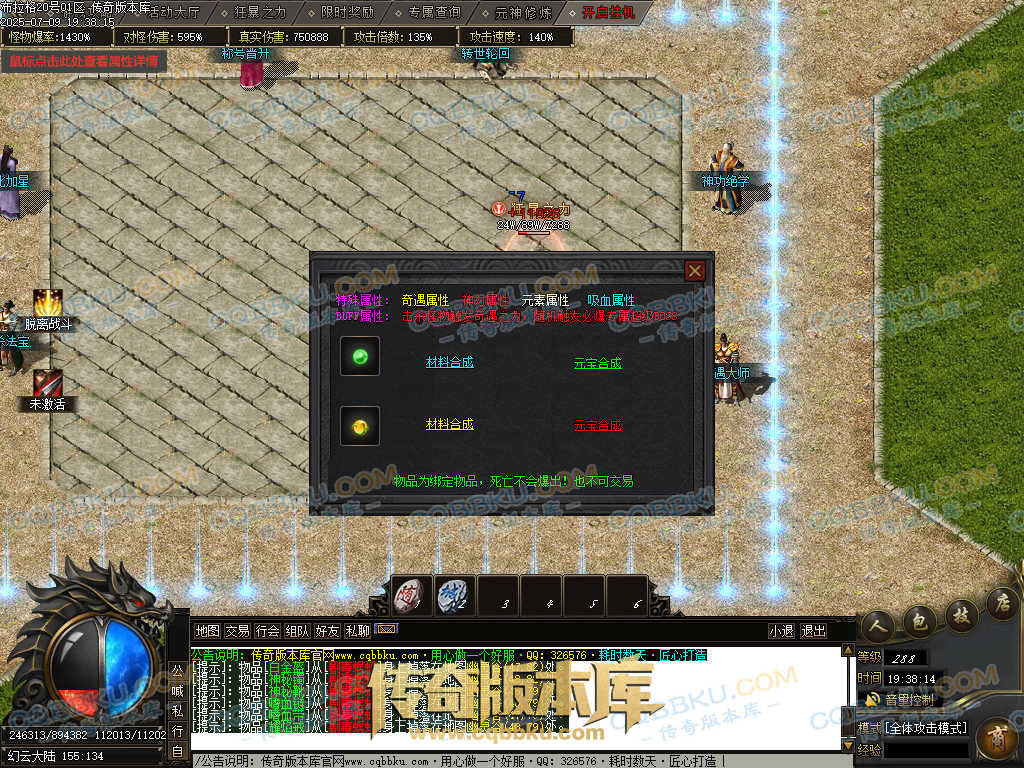 PS:切记这几个NPC击杀怪物需要把合成的(背包神器倚天剑)存入仓库,否则不会触发击杀怪物,玩家切记!