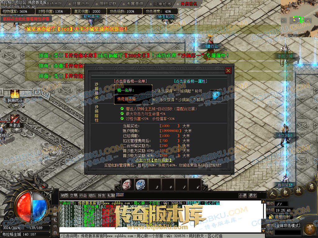 沙城捐献:首次捐献300大米激活沙捐,捐献达到1000大米即可获得榜一属性!(沙捐赠送五转)