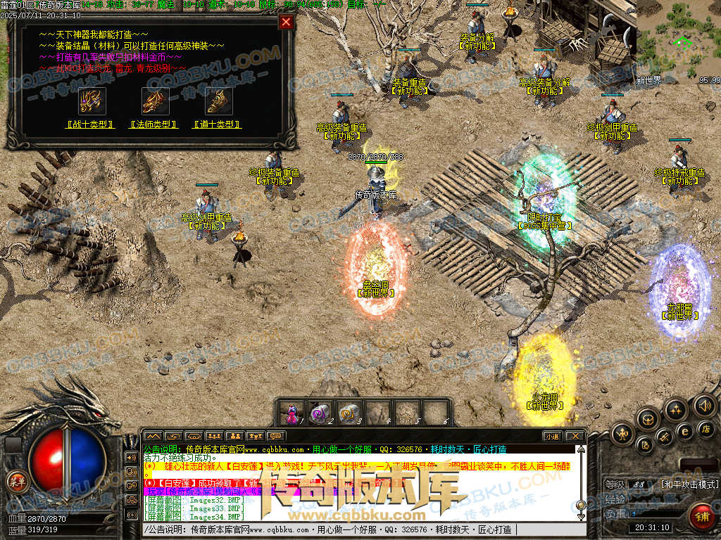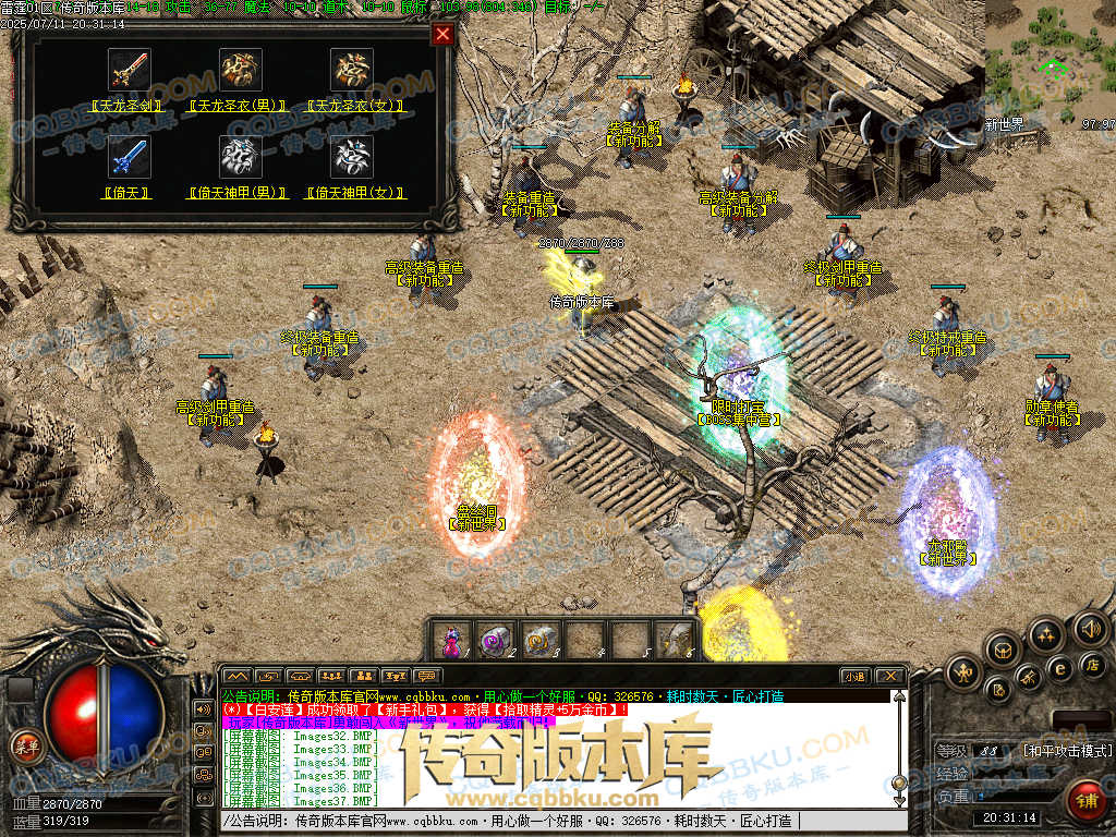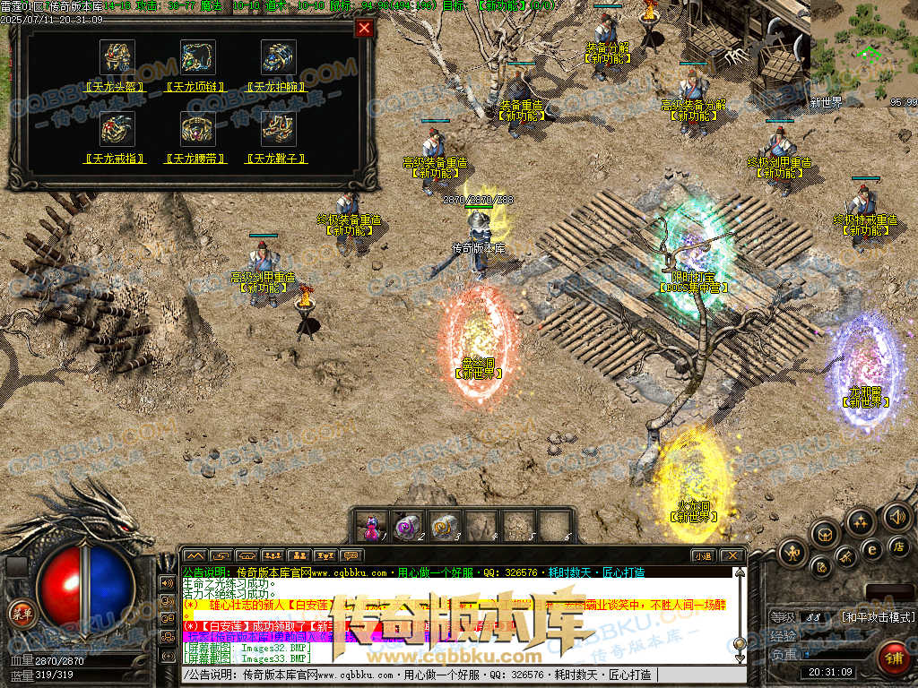 【游戏命令】千里传音:直接打"@传"或点击聊天框左边《特殊命令》(每次使用需要5万金币);"@允许夫妻传送"、"@夫妻传送"!装备爆率本服装备等级为:商店套->沃玛套->祖玛套->赤月套->雷霆套->开天+镇天+玄天