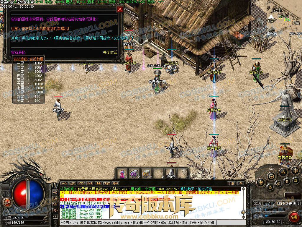 【升级介绍】1、幻境1-6里面双倍经验升级超快;2、去散人打宝,玛雅1-4层,牛魔等地图打祖玛,赤月装备回收;3、土豪可以在安全区收购装备来进行经验回收!