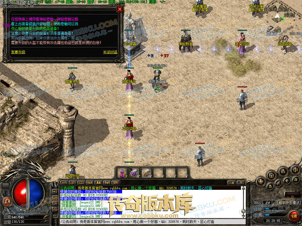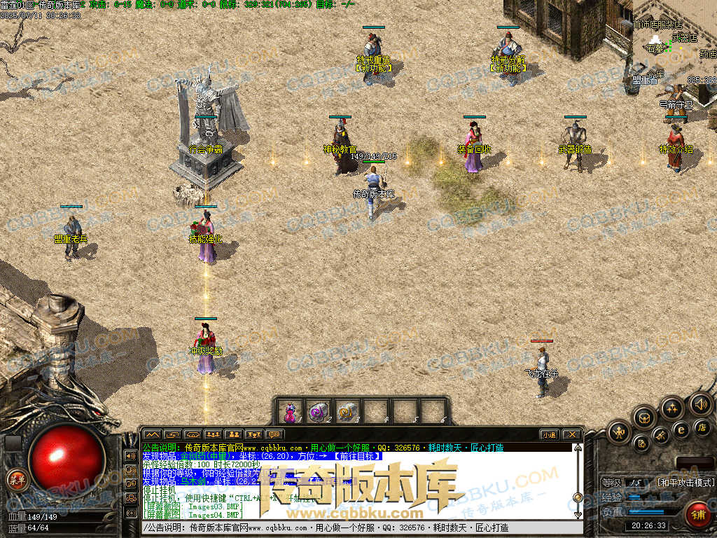 升级:主要靠装备回收经验升级,回收给的经验还不错,打怪的经验对升级没有什么用处(等级的好处就是可以提升三围,冲级奖励:土城左侧冲级奖励NPC处查看)。