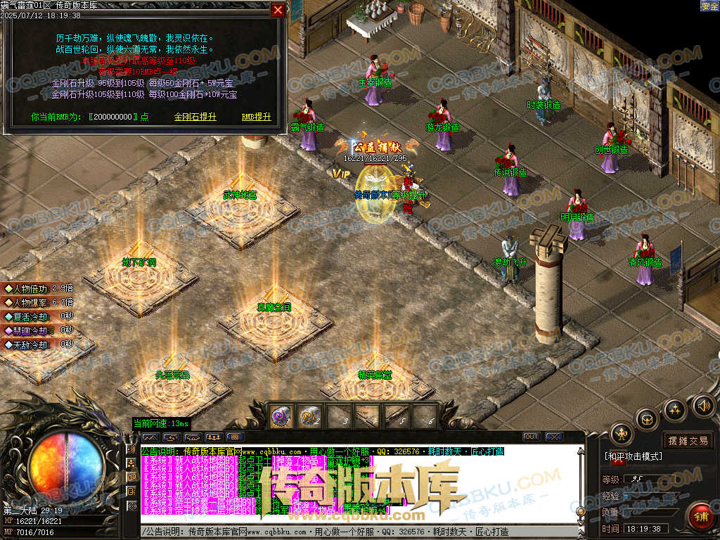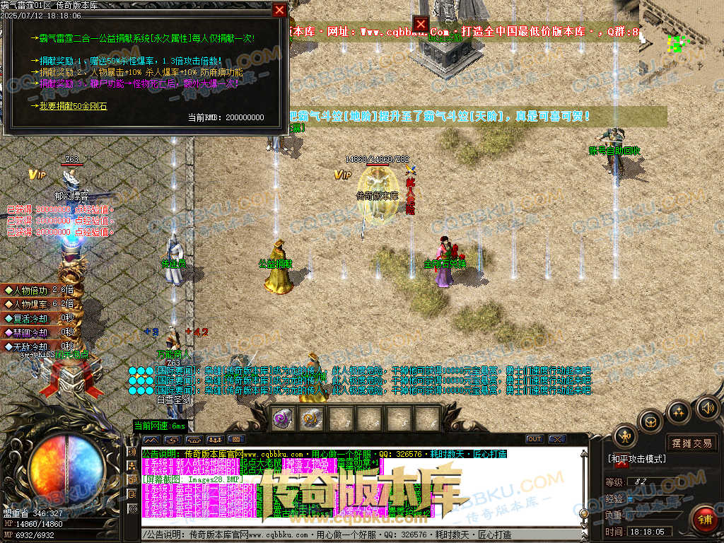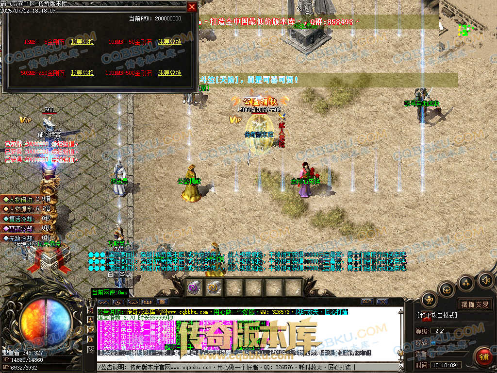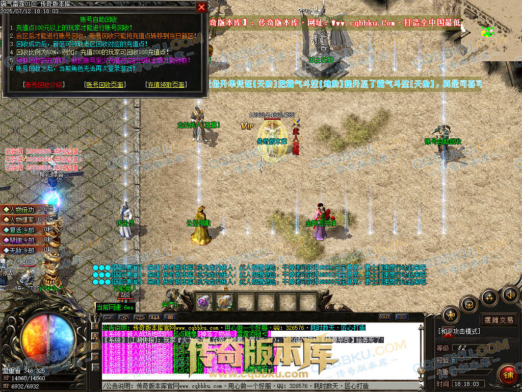 版本介绍:本服为单职业雷霆二合一版本,上线免费泡点,按照地图等级打装备,不花一分钱一样终极!