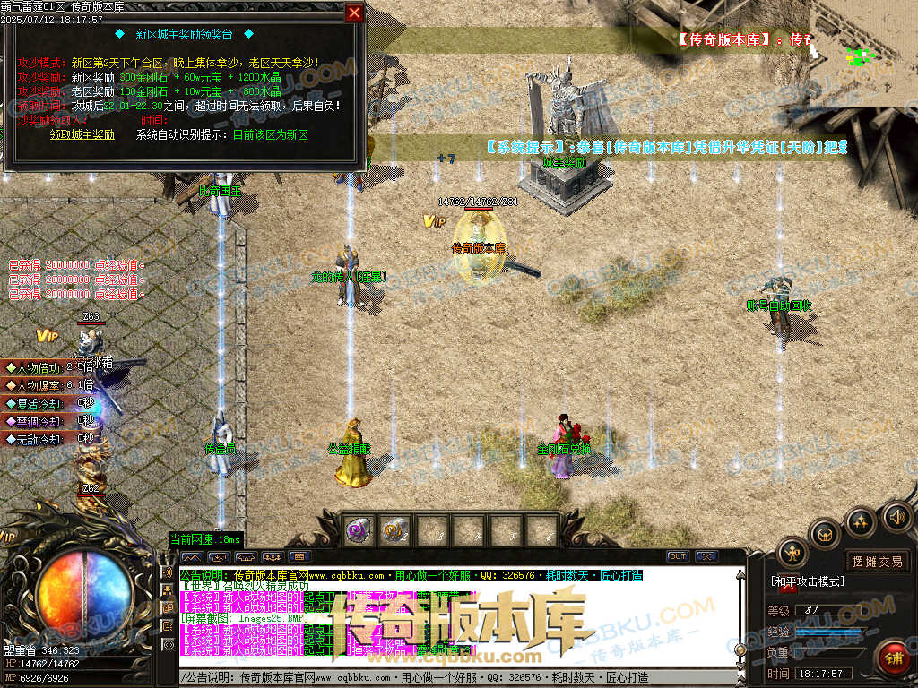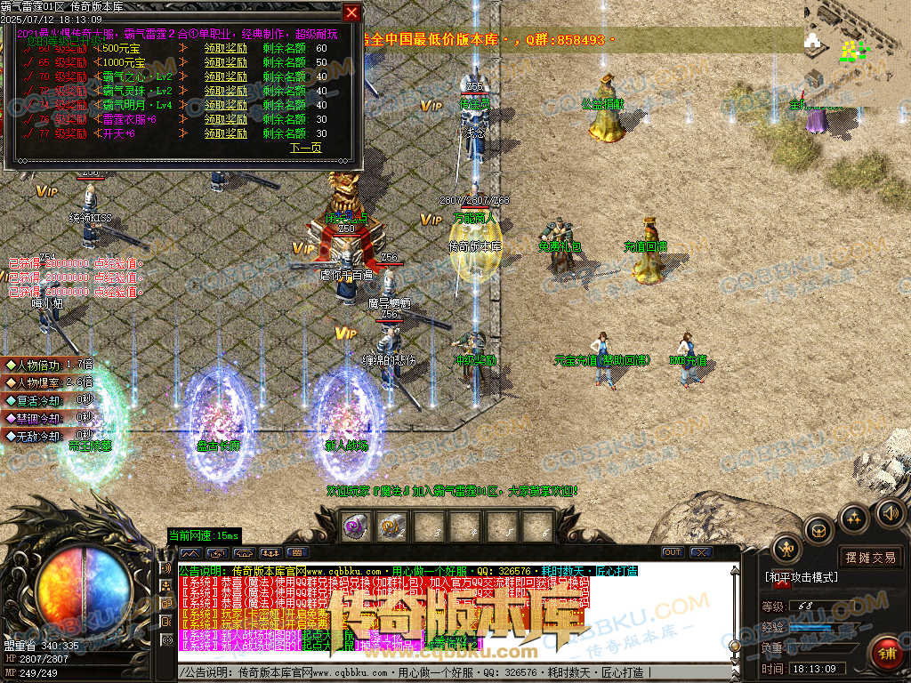 版本介绍:新区开放第二天下午合区,晚上8点到十点激情攻沙,再入雷霆已称帝!