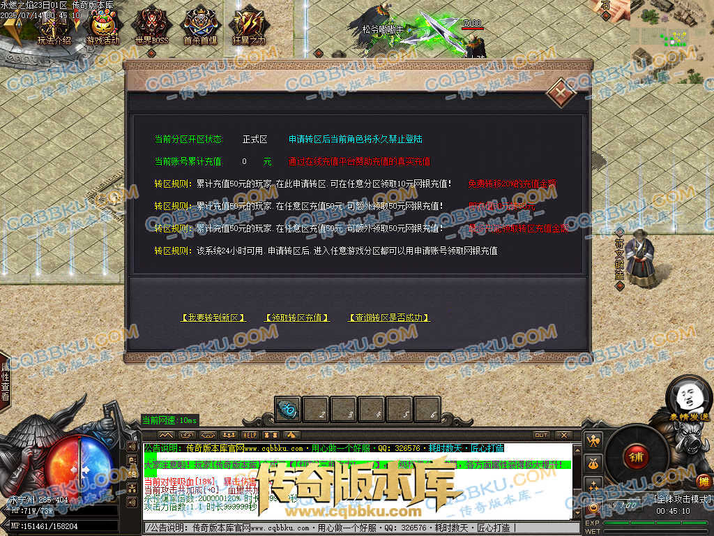 [12].本服开放自助转区服务(充值满50米以上玩家每人可享免费转区名额一次)