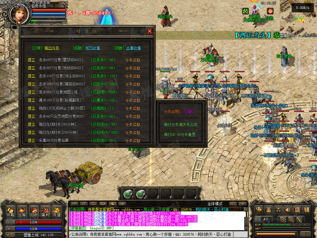 新手任务非常好做,四个新手地图的BOSS打一遍就可以了,前期回血,打怪必备!!