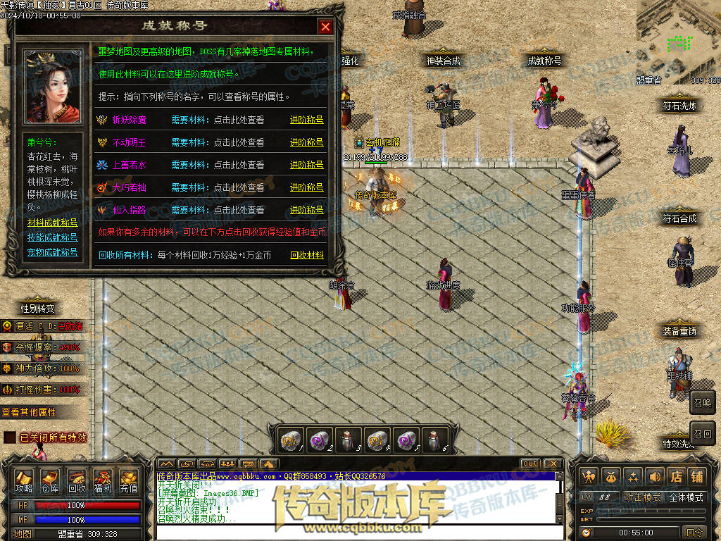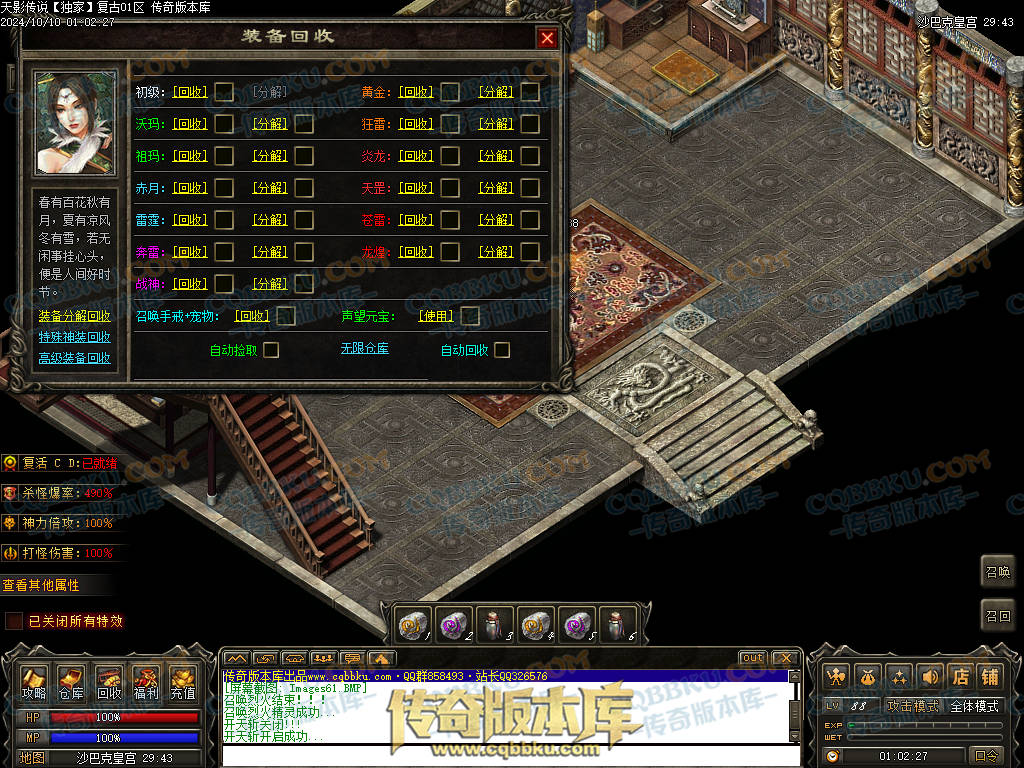5.装备系统普通,精良,稀有,完美,史诗--沃玛,祖玛,赤月,雷霆,奔雷,战神,黄金,狂雷,炎龙,苍雷,龙煌