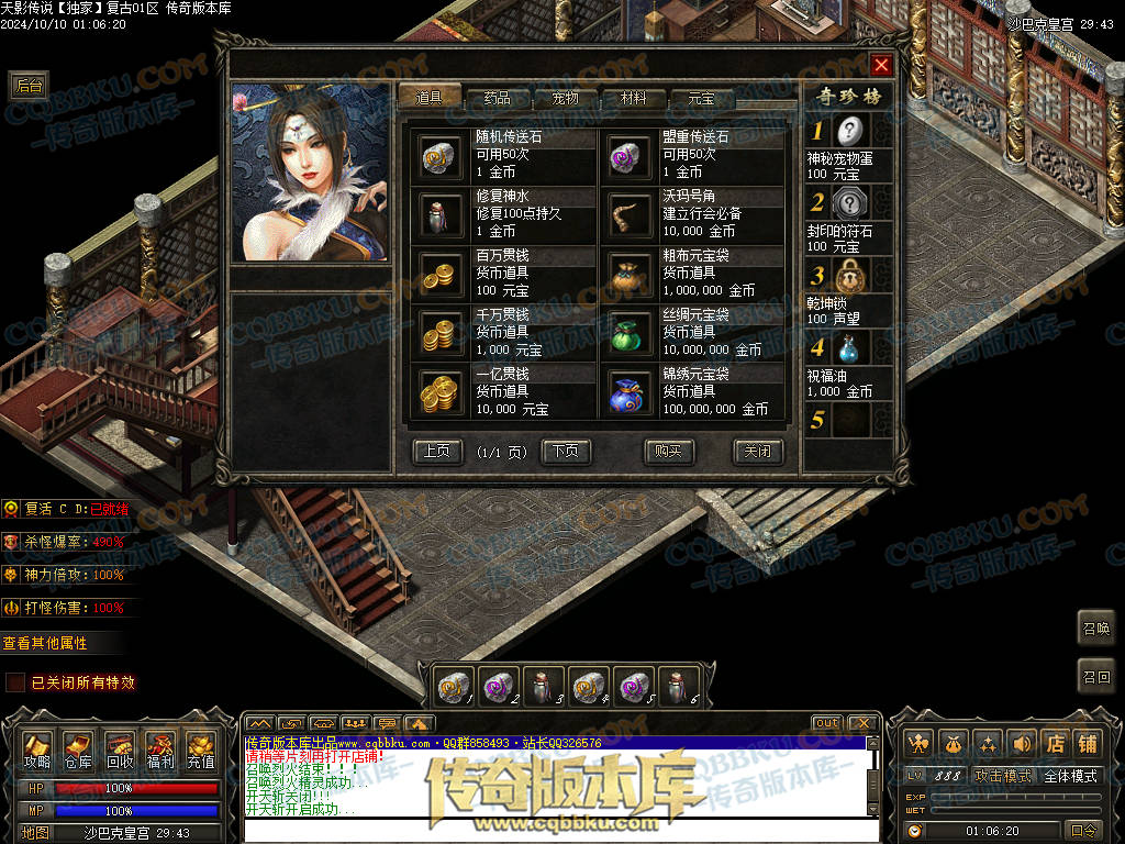 6.元宝比例:1比100元宝100声望,多冲多送,游戏内卖元宝比例都是骗子.