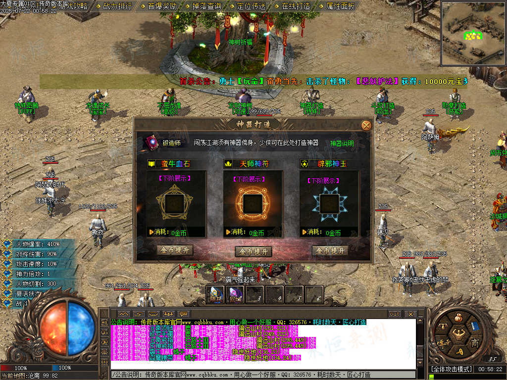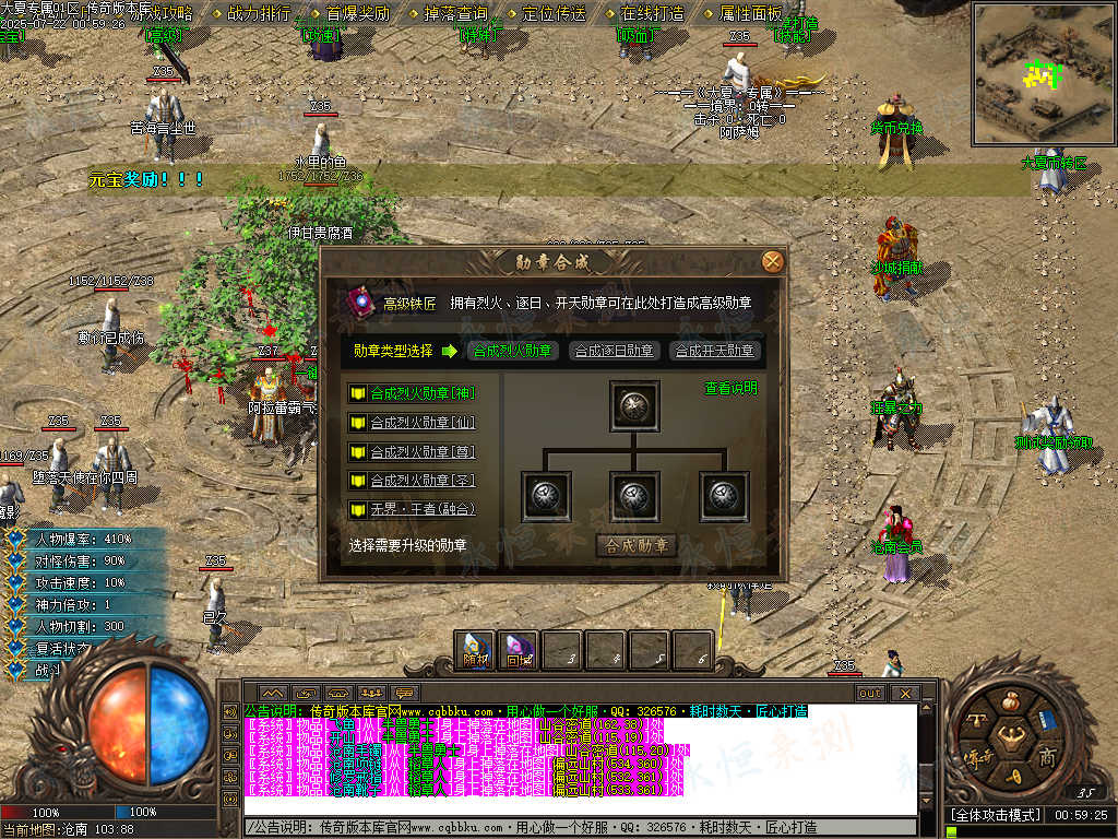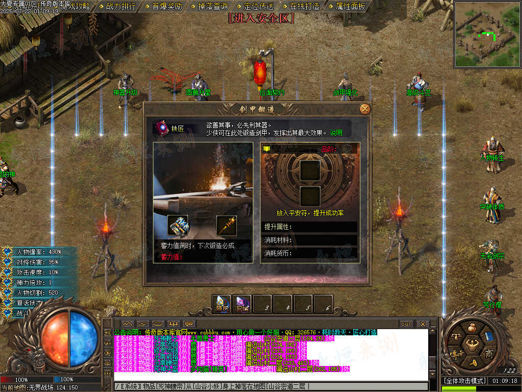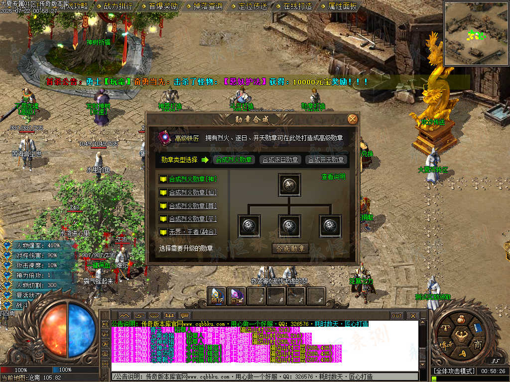 2、提高攻速后,有多的金币元宝材料就升升斗笠勋章, 建议优先在神器打造提升辟邪神玉!!