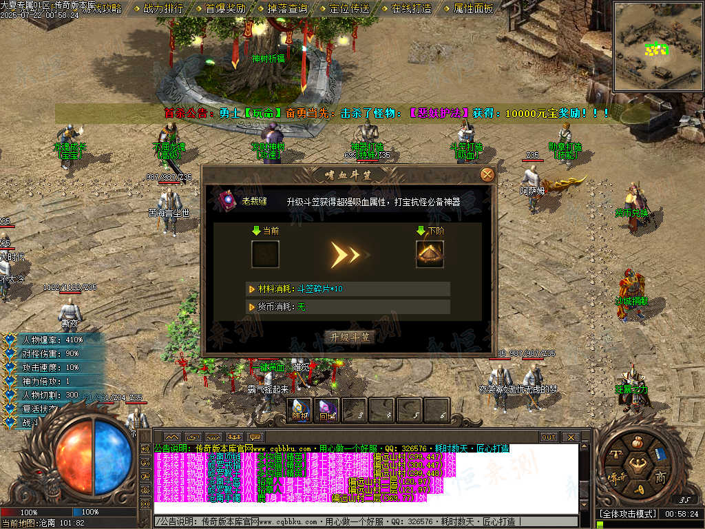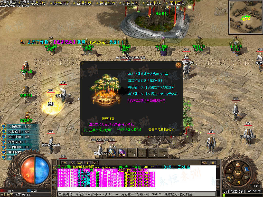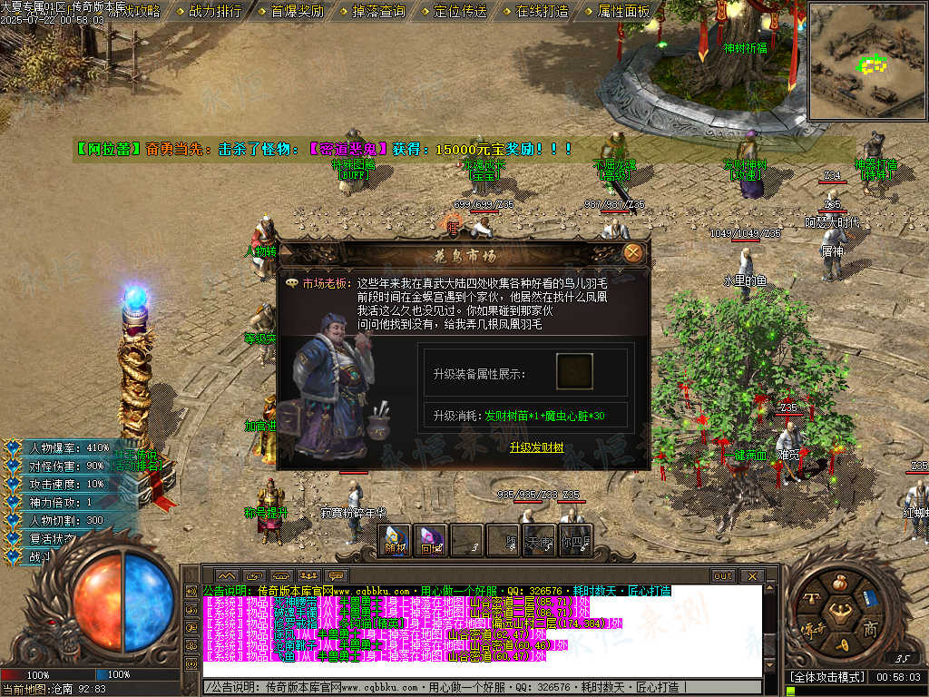 1、祈福后有大量金币元宝购买商铺魔虫心脏,到土城上面发财树NPC升级攻速