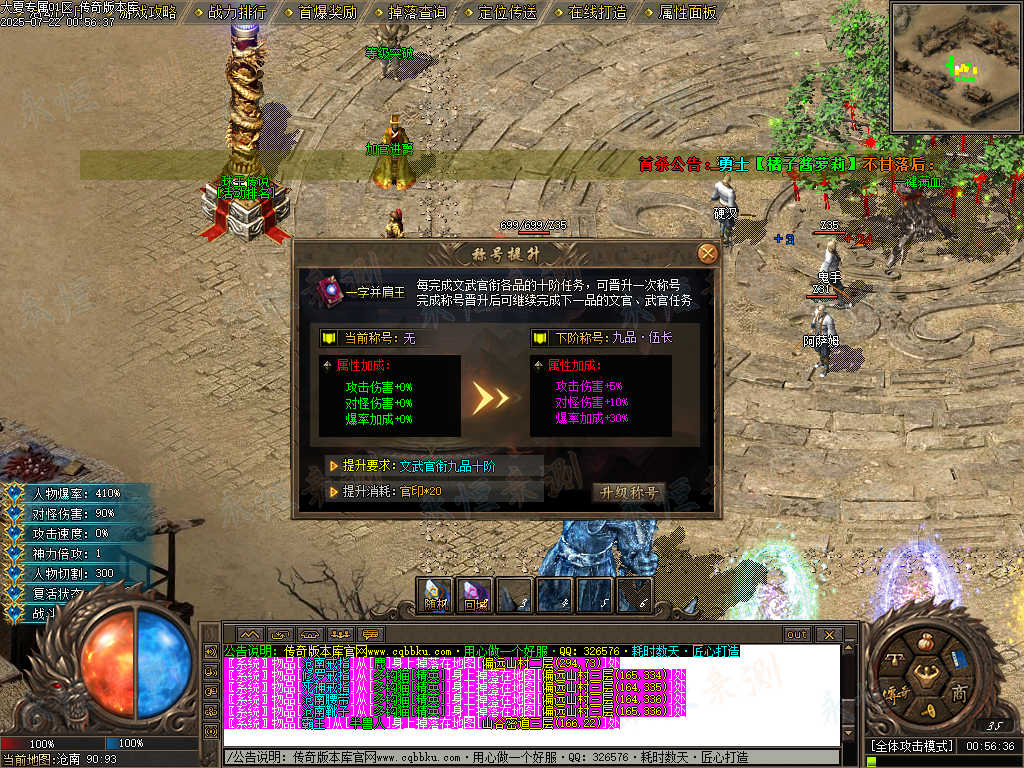 9、加官进爵提示血量和切割值、品阶满了之后到称号提升npc提升