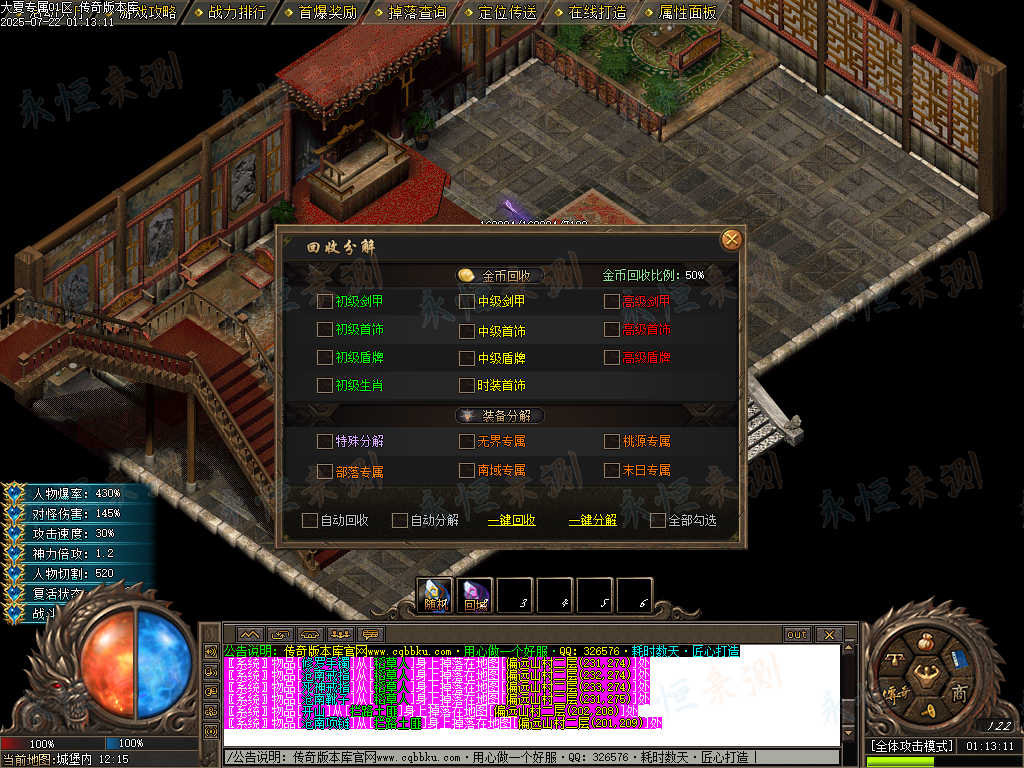 01-659独家大夏专属沧南神器正版开区单职业传奇服务端-带光柱带假人-沧南会员-特殊图腾
