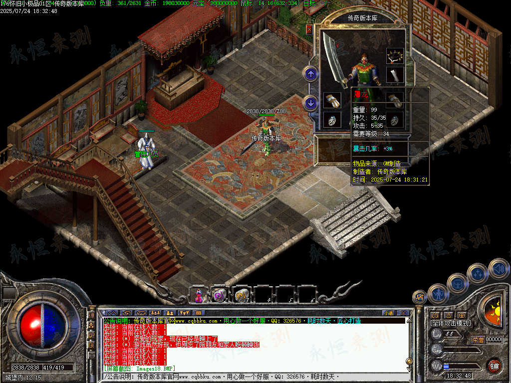 郑重承诺:本服赤月封顶-屠龙终极-无升级奖励-所有装备全靠打- 绝无任何其余装备 玩的就是正宗复古传奇。
