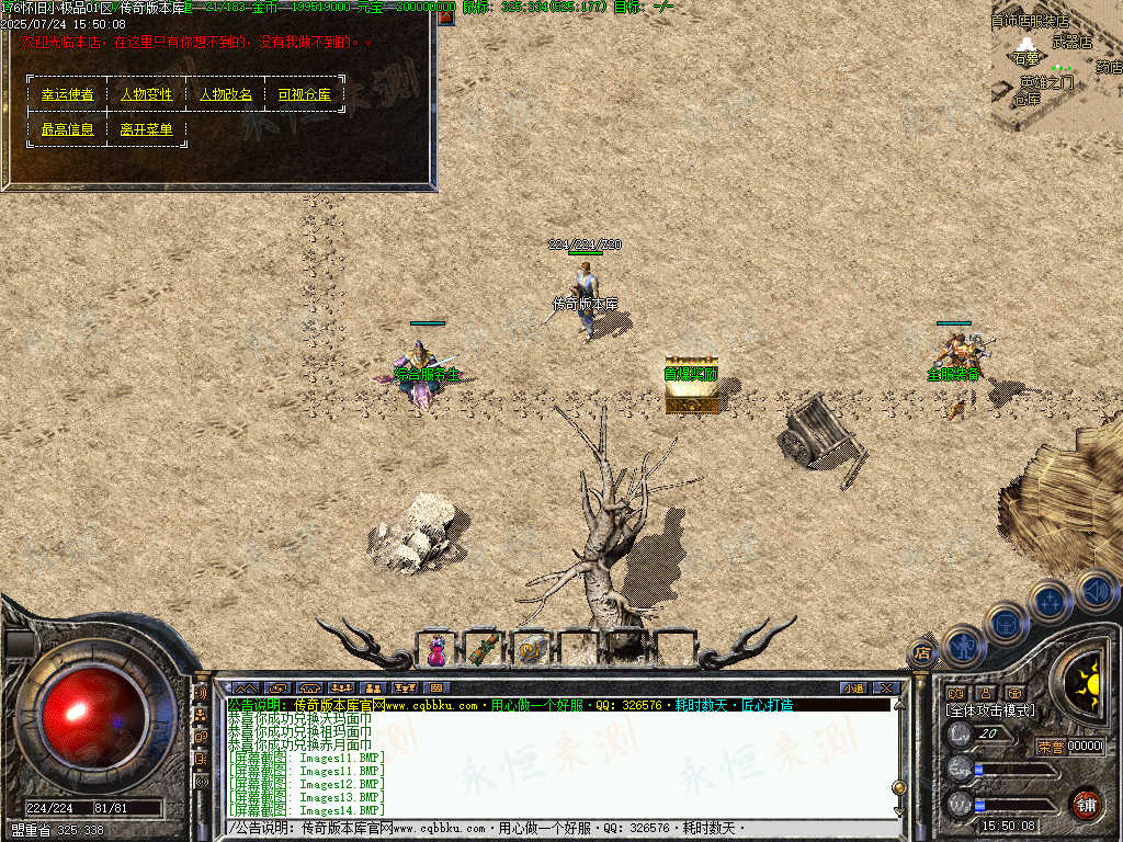 本服升级武器特色:升级武器1分钟可取 。武器升级有几率跳点1-3点 。给各位玩家制造一点乐趣!!!