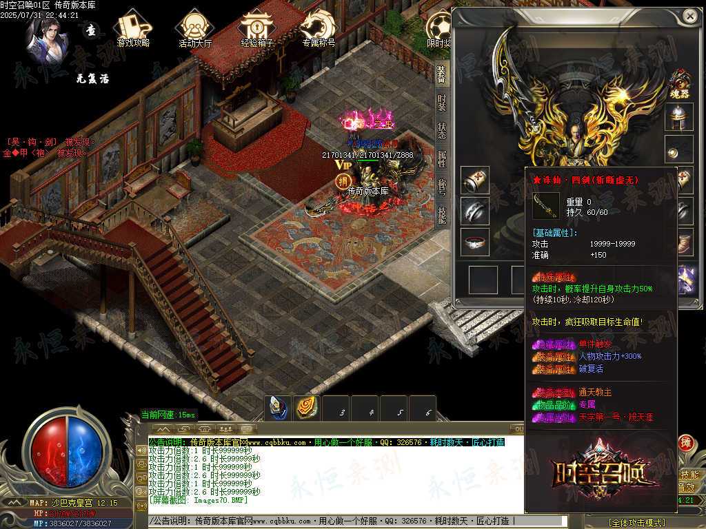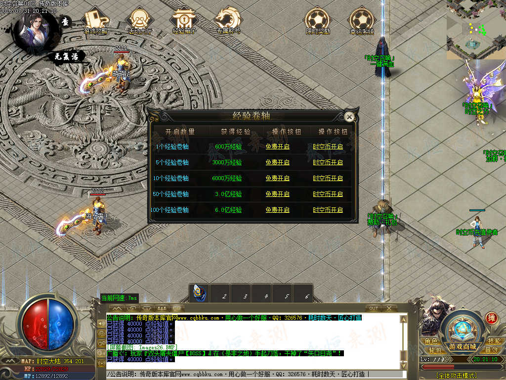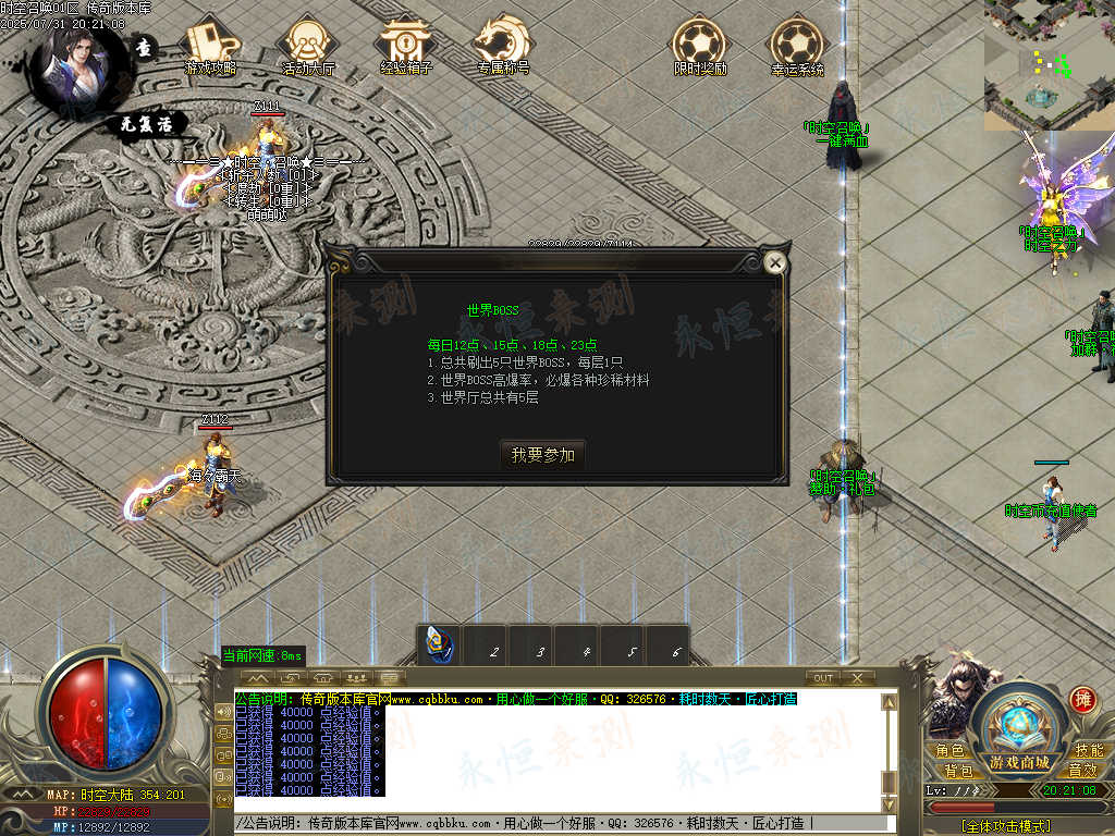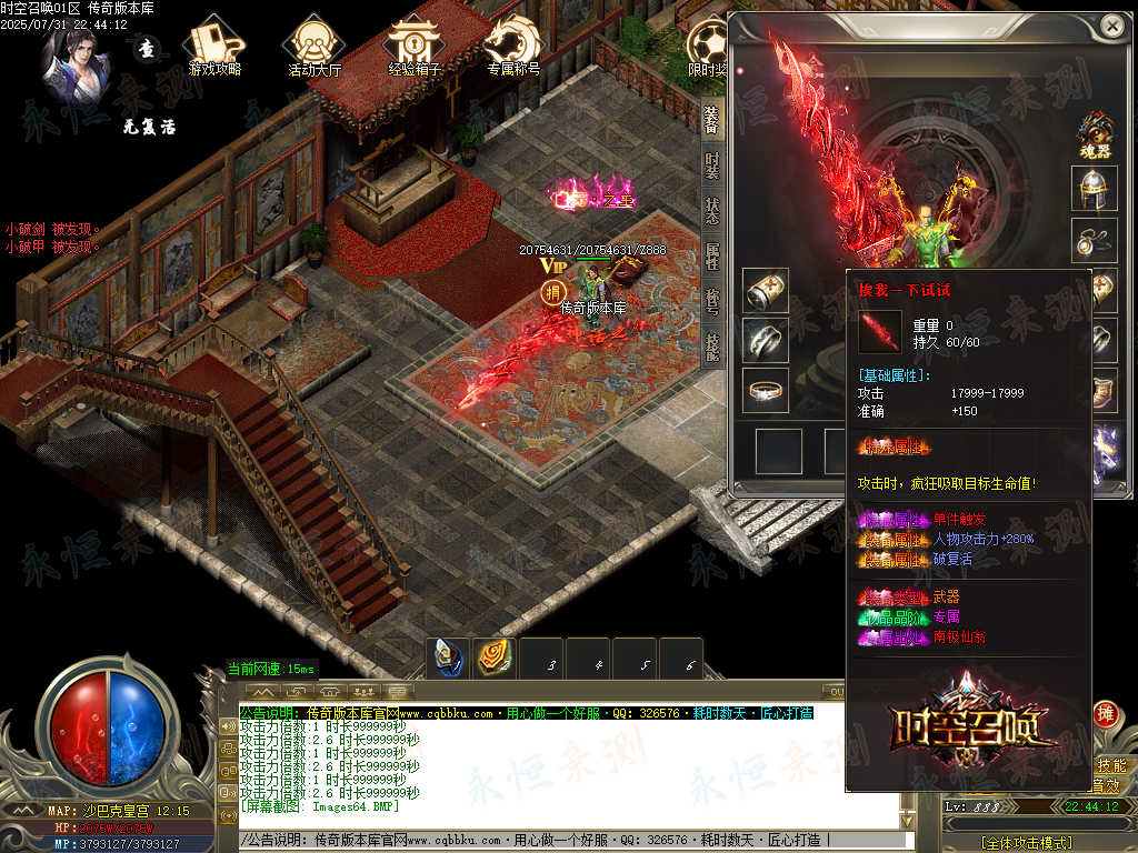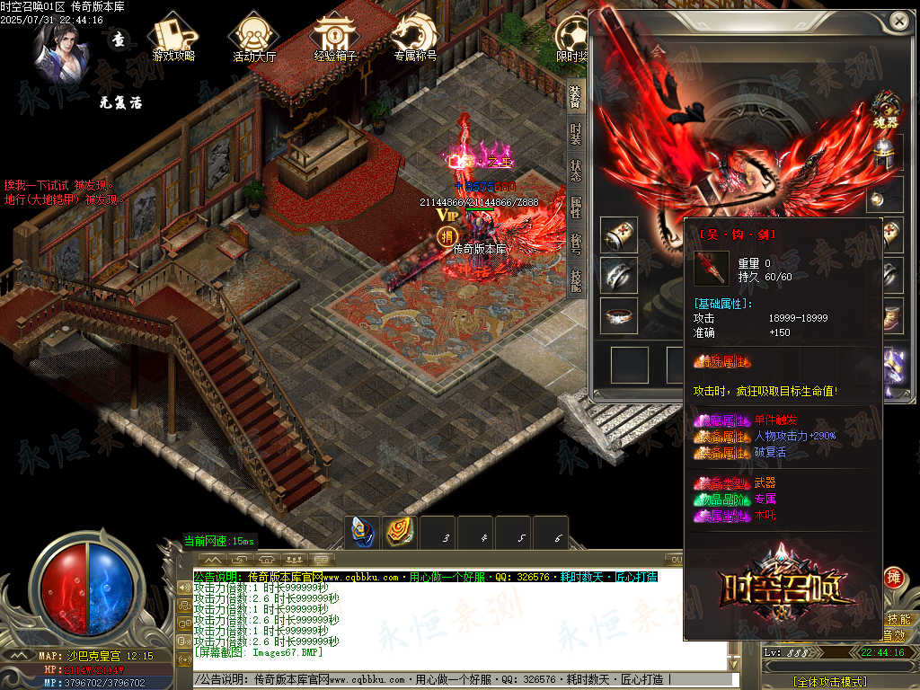 标签:时空召唤,专属神器,单职业,智能假人,ESP插件,自动回收,大背包