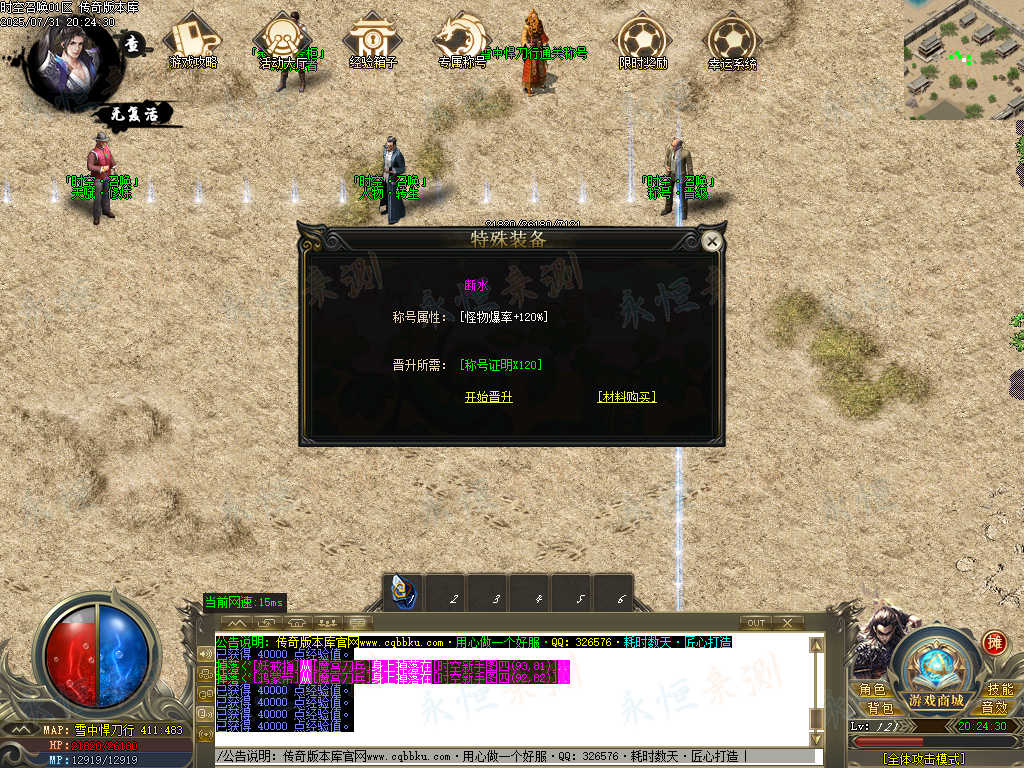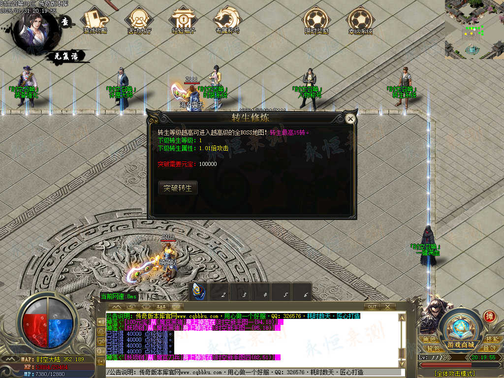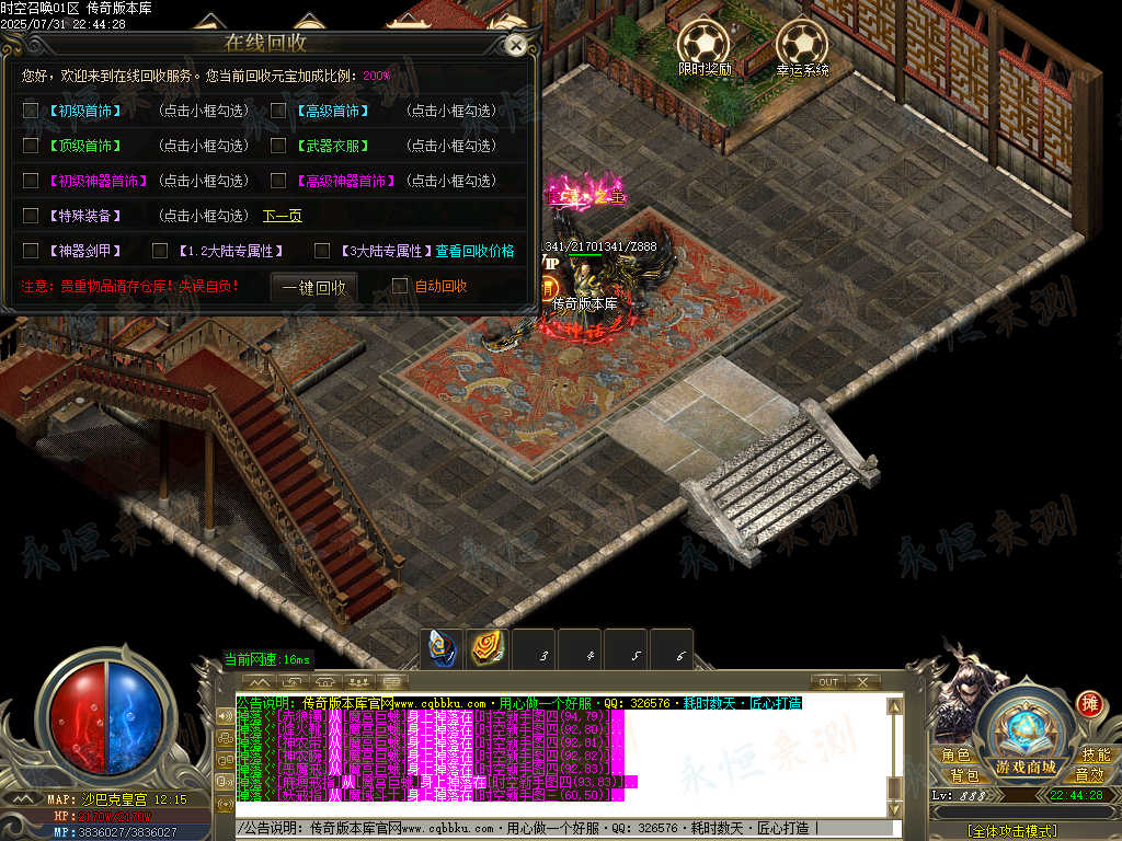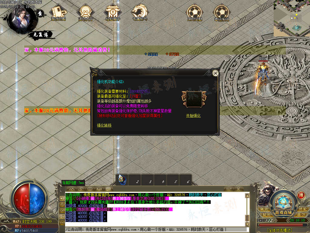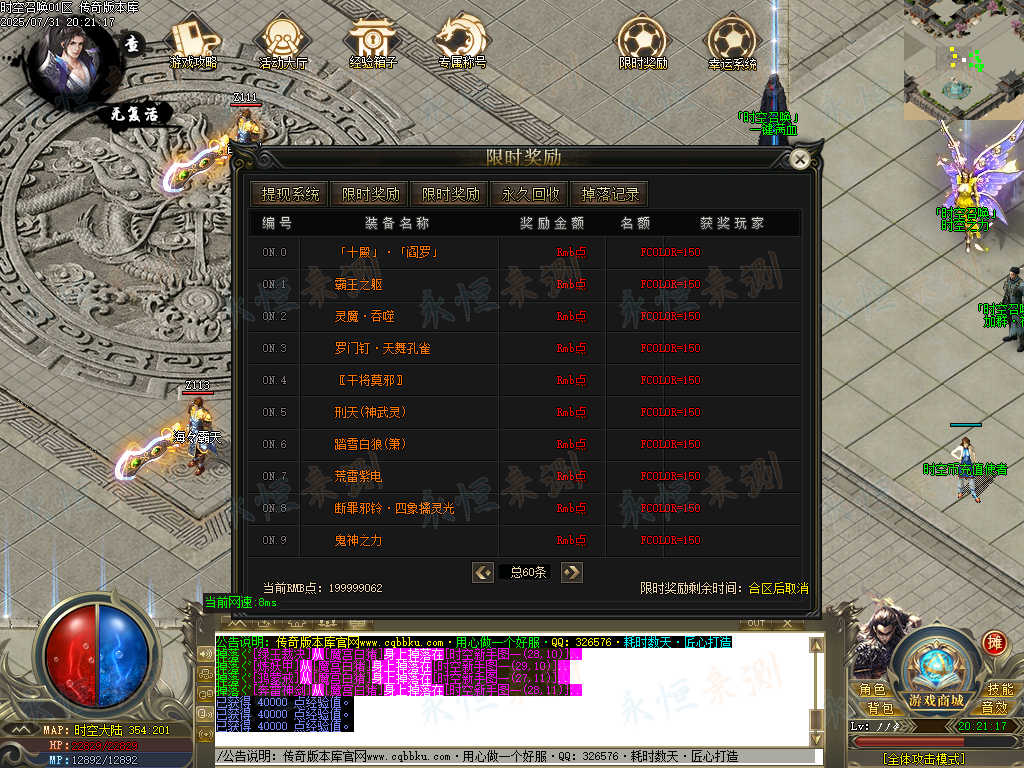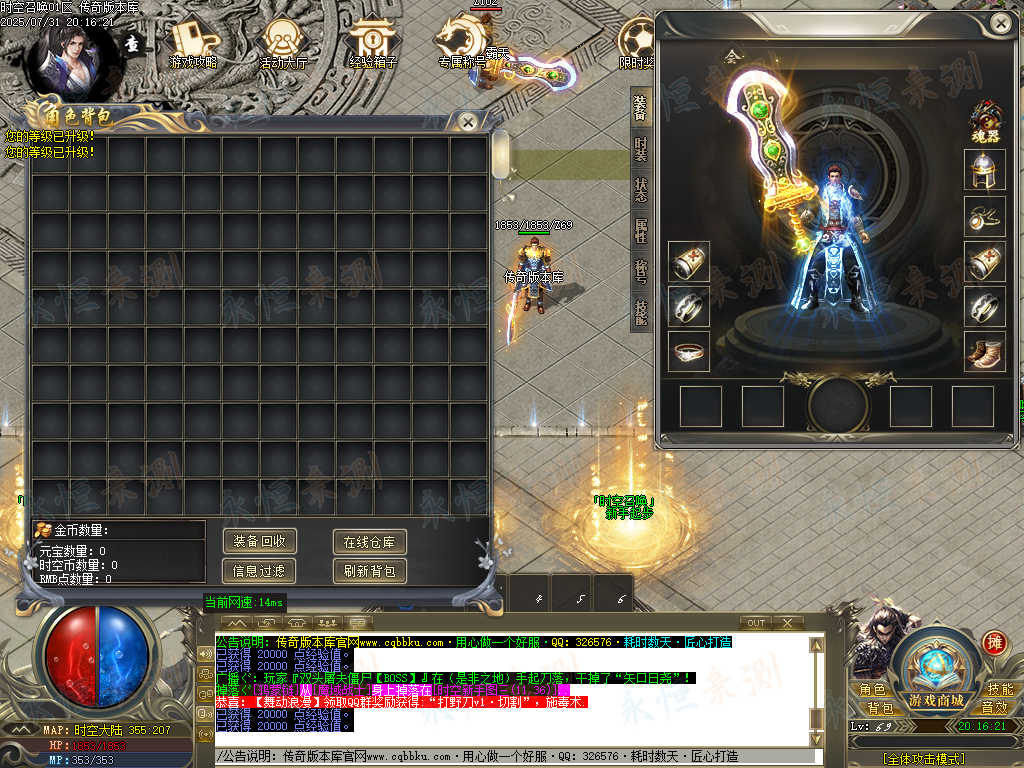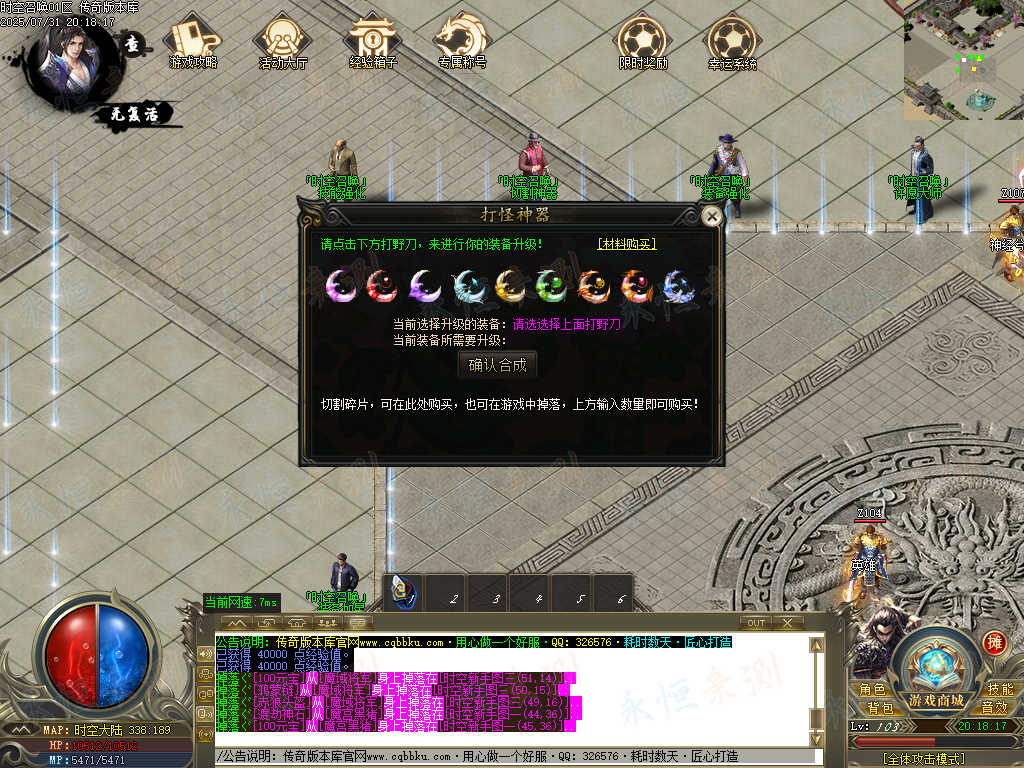 01-668独家时空召唤专属神器单职业传奇版本-智能假人-ESP插件-自动回收-大背包 | ||